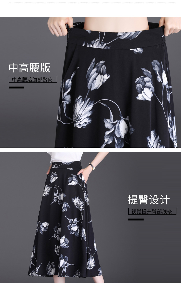 印花半身夏季新款A字裙,时尚气质女装中长裙高腰口袋裙MYX-5822