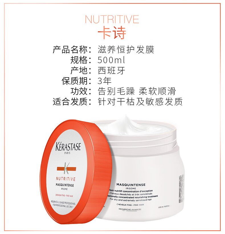 卡诗滋养奢护丝柔发膜500ml/117794 护理脆弱受损润泽干枯毛躁细发用