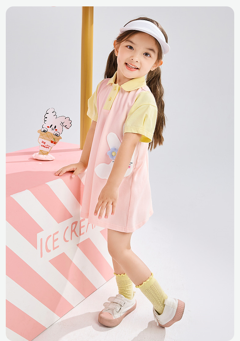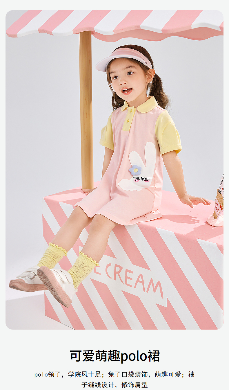 笛莎Deesha 女童连衣裙2024年新款POLO领连衣裙