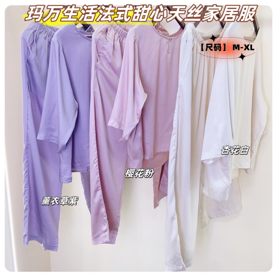 MAWALIFE 玛万生活法式甜心天丝家居服 【品牌】玛万 【规格】1套 【颜色】杏花白、樱花粉、薰衣草紫 【尺码】 M-XL 【面料材质】奥地利兰精天丝面料 【产地】南通 【发货地区】南通 【发货快递】三通一达 【发货时间】截单后3-5天内 【偏远地区运费】内蒙古、海南、青海、甘肃、宁夏+10元,北京、上海+2元,新疆/西藏不发 [售后标准] 1.支持7天无理由退换货,非质量问题运费自理(不能影响二次销售); 2.物流签收超过7天!!不予售后!! 不支持拒收与拦截!!快递运输过程中拦截、拒收扣10块运费!! 3.产品质量问题,签收24h内(拍照快递面单产品质量问题照片)反馈客服; *温馨提示:天丝面料建议手洗,如果机洗请选择轻柔档位,浸泡&洗涤时间尽量不超过15分钟,不要甩干,带水晾干 *由于拍摄光线/场地/显示器不同等,产品会有轻微色差,请以到手实物为准 *关于尺码:正码正拍,卡码建议拍大一码