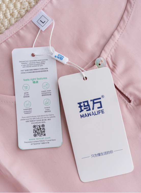 这款家居服,面料选用是的正规天丝 要知道天丝这种面料 可不是随便就能叫的 只有奥地利兰精(Lenzing)公司生产 注册为TENCEL商标的面料 才可以叫做天丝