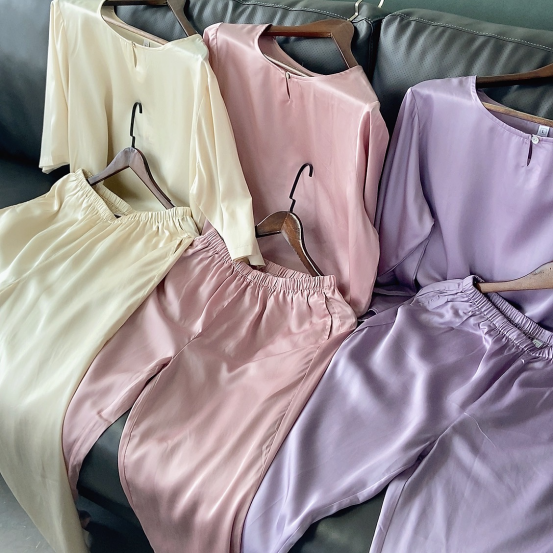 宅家的舒适感 离不开一身好穿的家居服 现在夏天好容易闷热黏糊 想要穿出清爽躺平的居家幸福感 强推这套玛万天丝家居服系列!