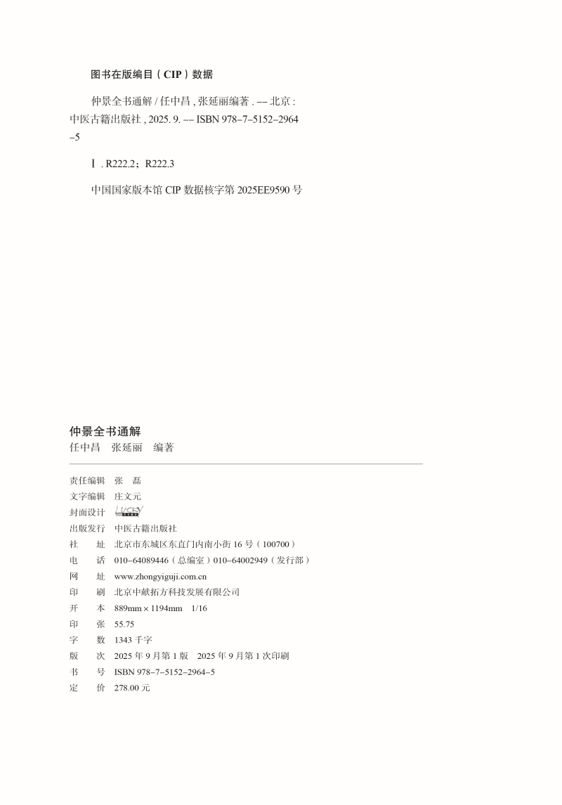 仲景全书通解 任中昌 张延丽 编著 通解伤寒 辨不可发汗病脉证并治 胸痹心痛 短气病 中医古籍书籍 9787515229645中医古籍出版社