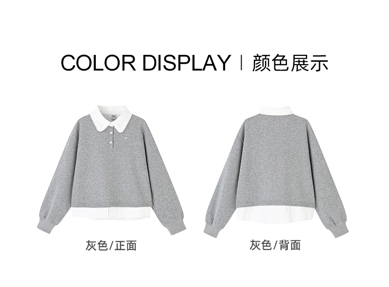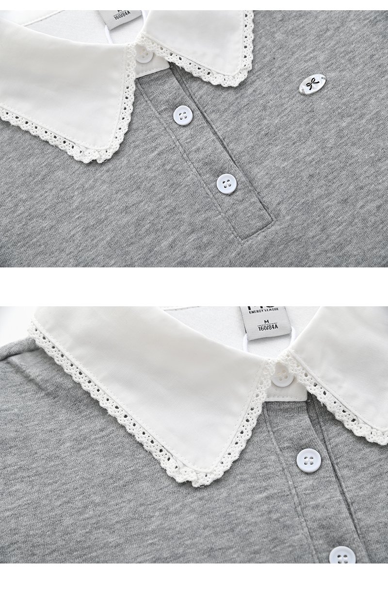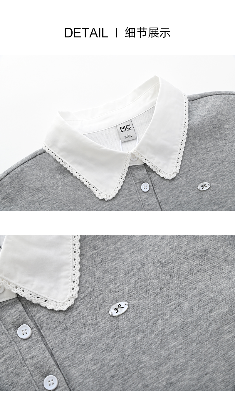 女装连帽钉扣款蕾丝帽绳T恤-19332T5212008