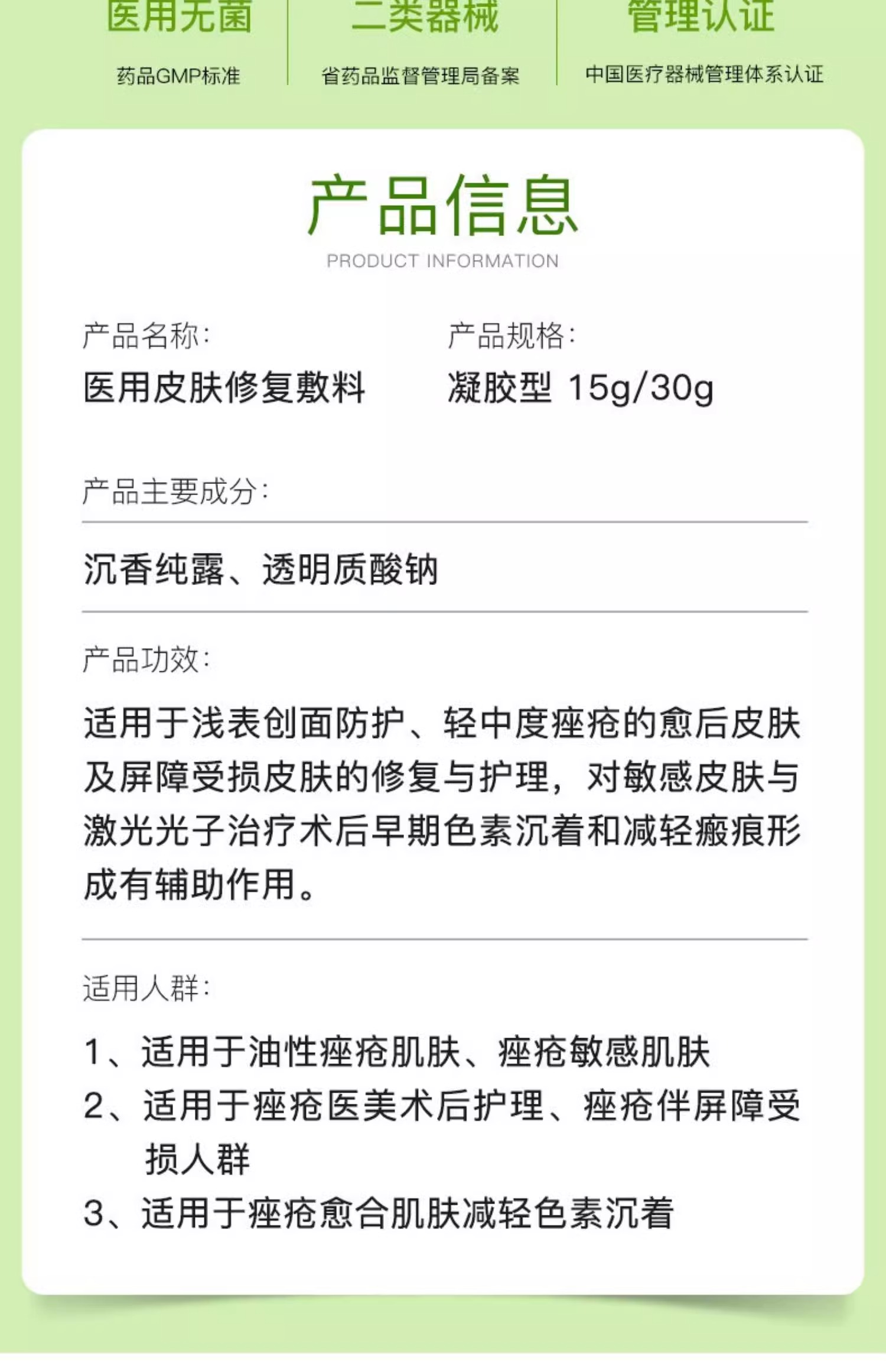绽妍医用皮肤修护敷料30g/瓶(祛痘凝胶)【械】效期至25年8月
