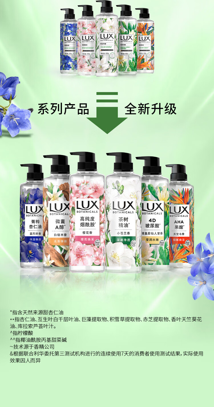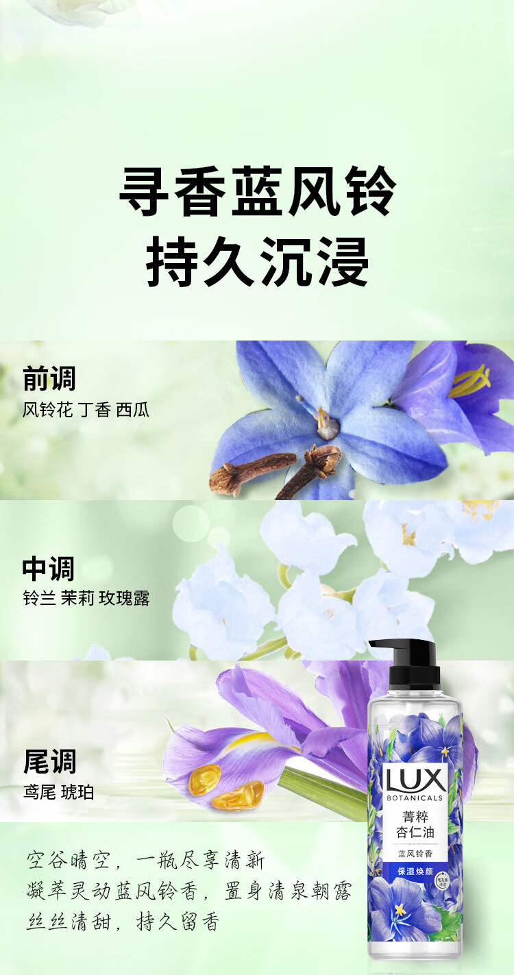力士植萃精油香氛沐浴露蓝风铃香550G