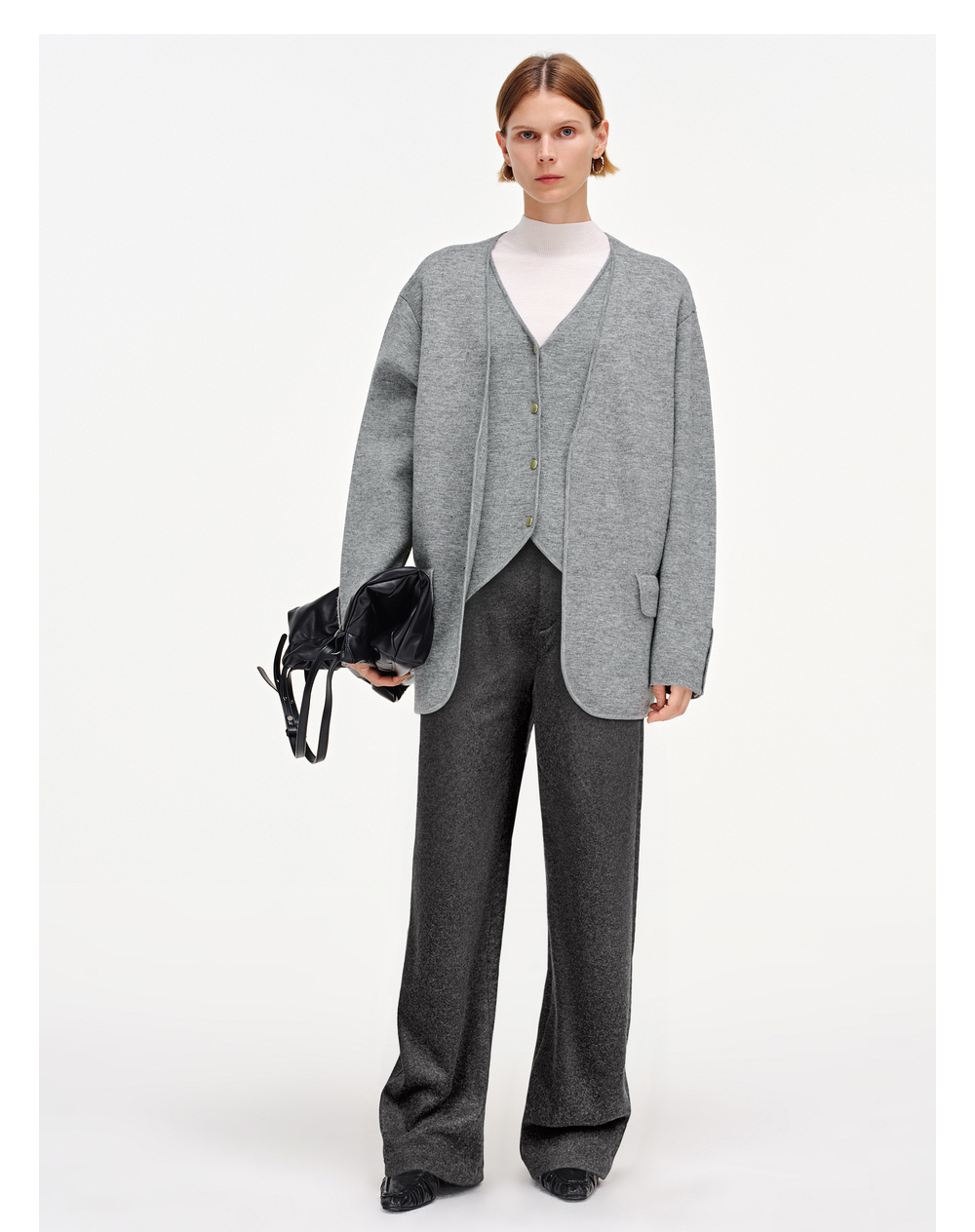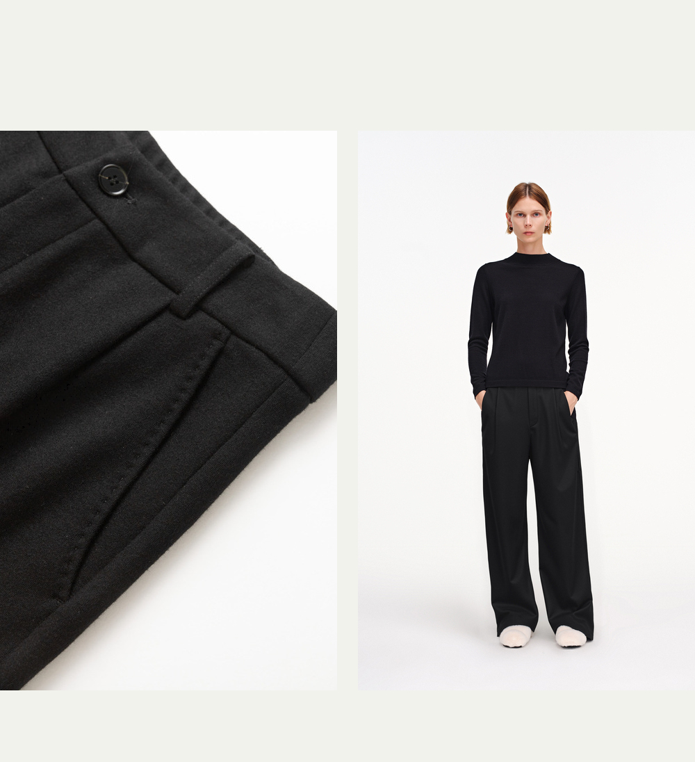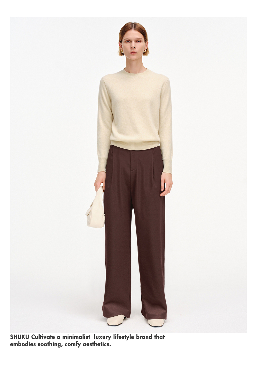 舒库长裤女冬季羊毛混纺阔腿裤高腰显瘦宽松直筒裤垂感针织裤