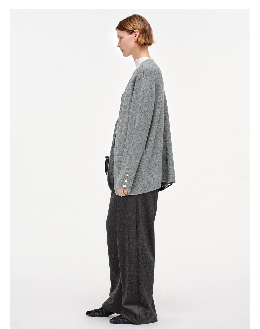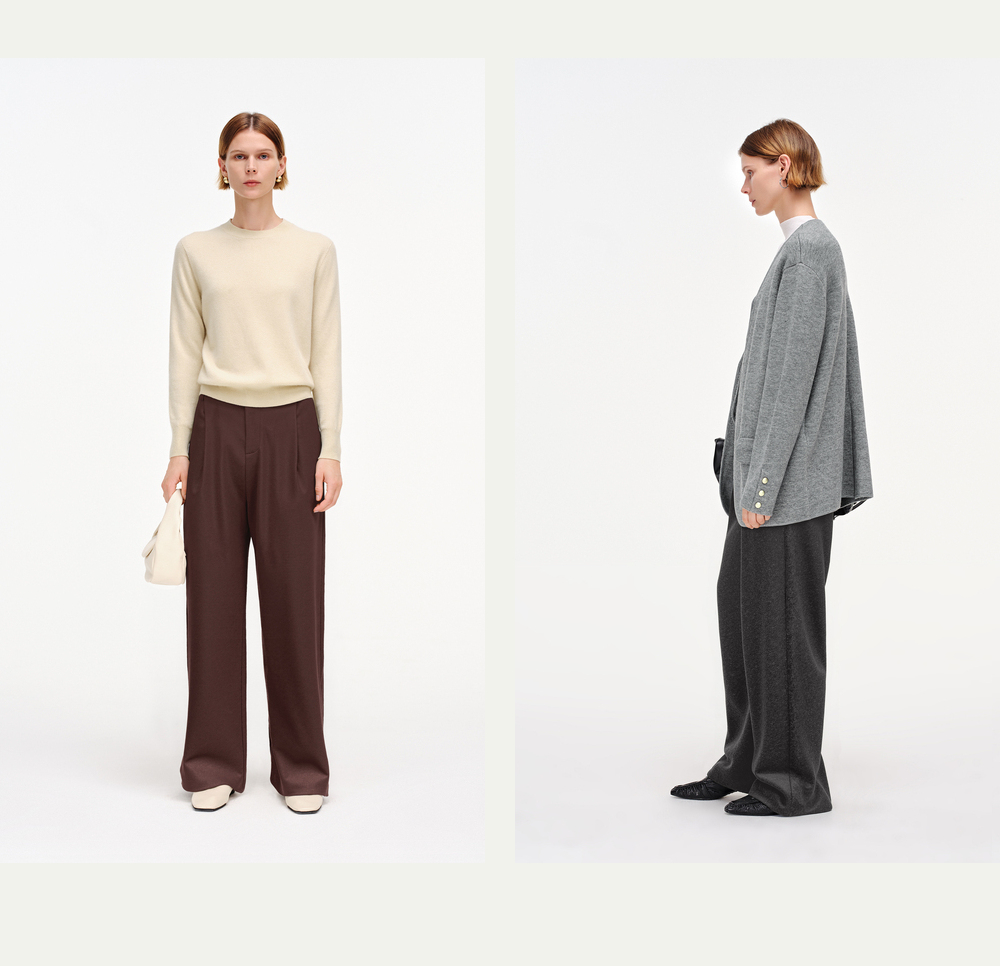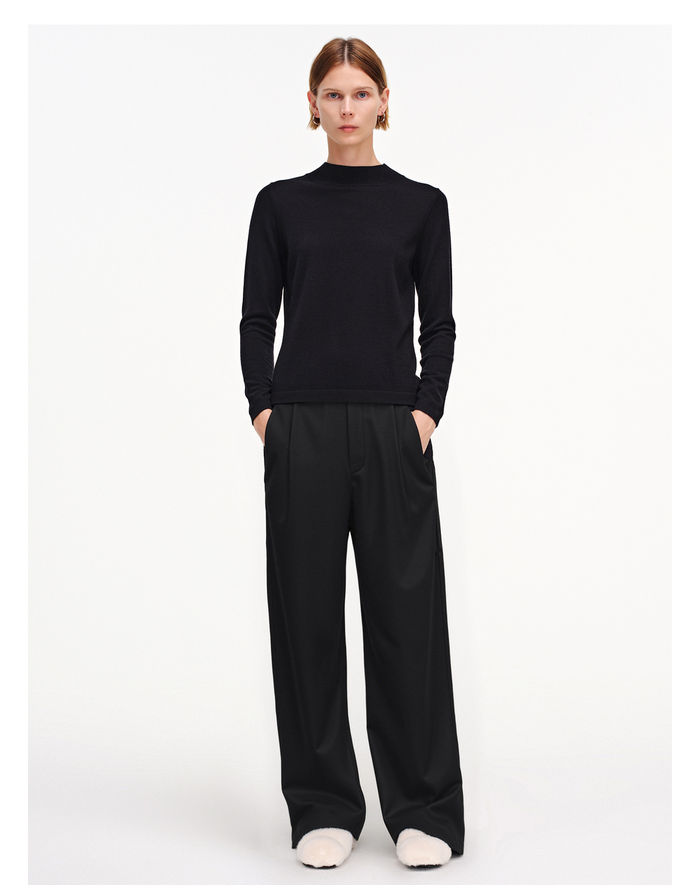 舒库长裤女冬季羊毛混纺阔腿裤高腰显瘦宽松直筒裤垂感针织裤