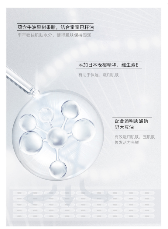 🔺日本晚樱花提取物 其渗透性及耐高温性好于同类提取物 可以促进含黑色素角质细胞的新陈代谢 促进合成表皮层蛋白质 改善肌肤质地,提亮肤色❗ 小分子物质和皮脂很相似、很容易类化和吸收 富含丰富的维生素A、B、E 可收缩毛孔、控制油脂 增加皮肤水分和预防老化❗