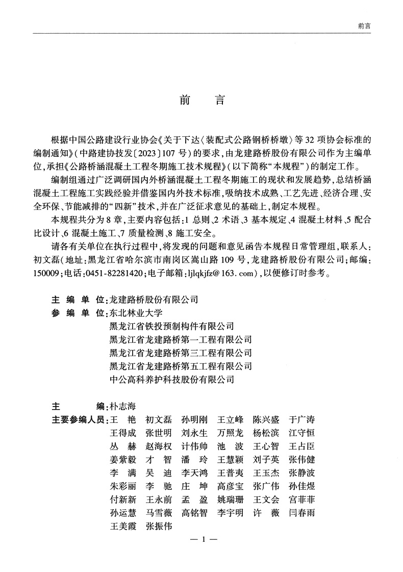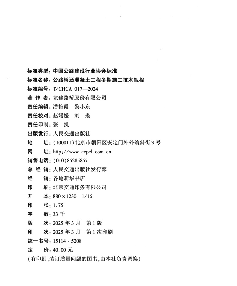 书名:公路桥涵混凝土工程冬期施工技术规程(T/CHCA 017—2024)