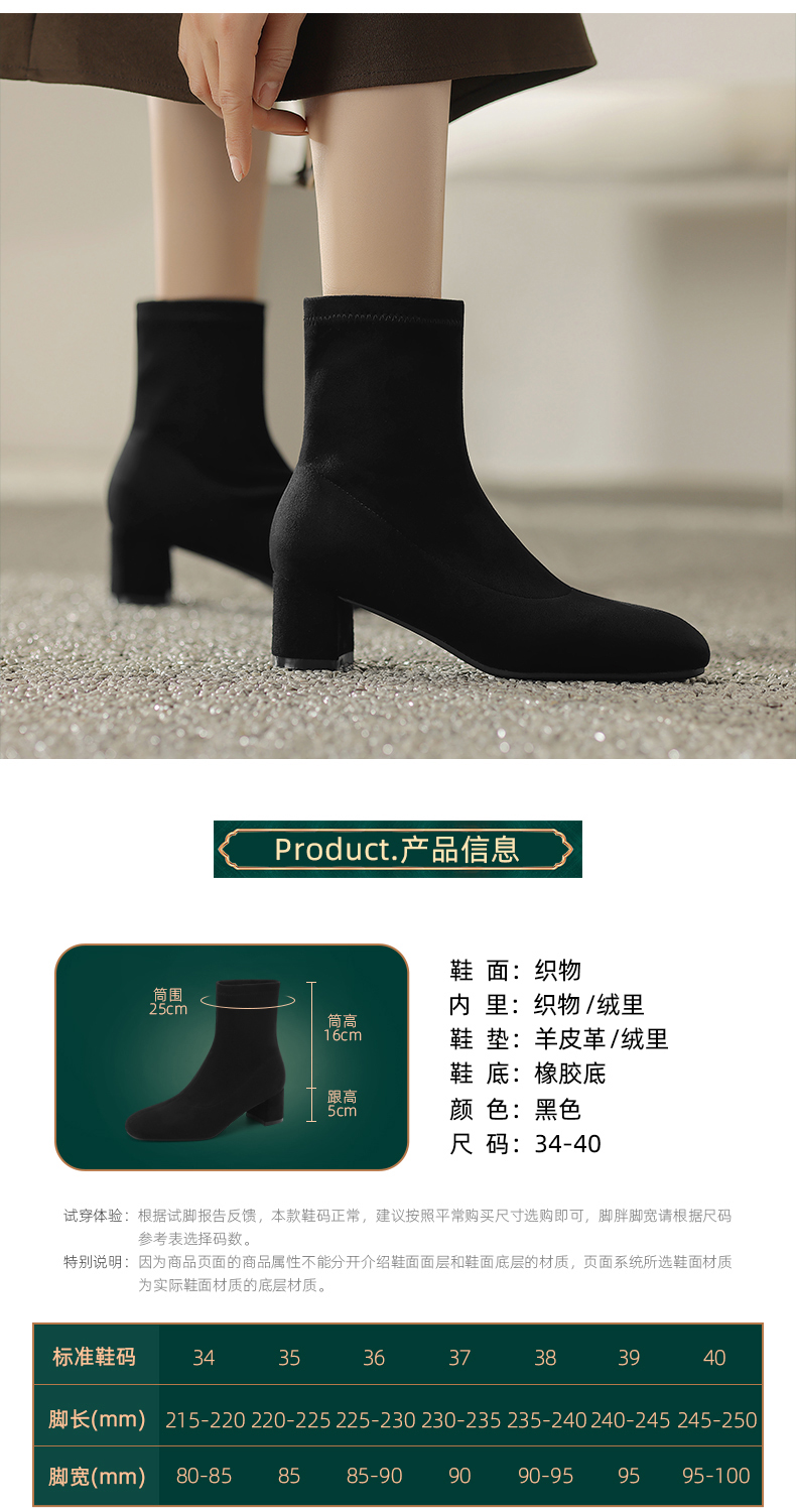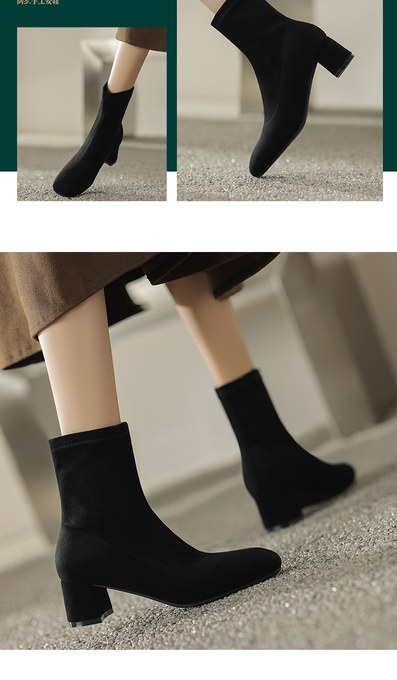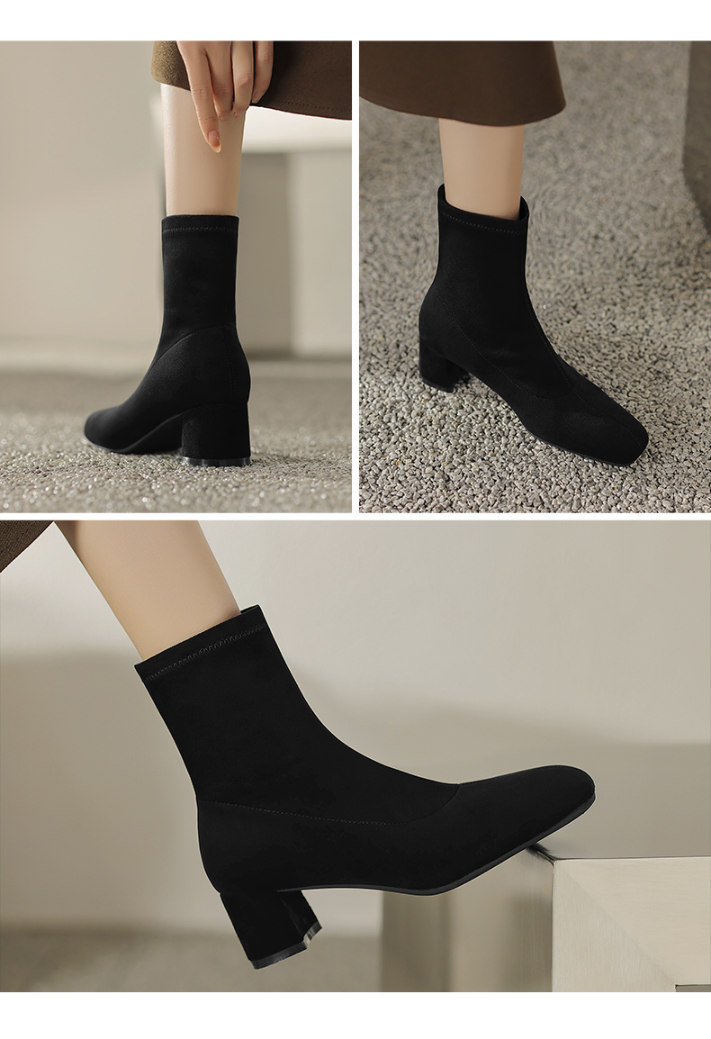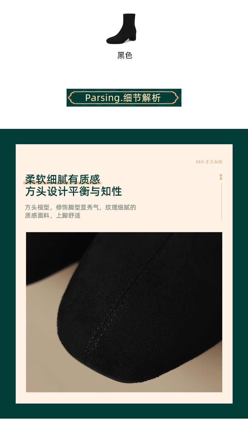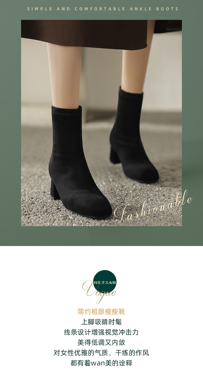 阿么手工女鞋2025新款粗跟弹力靴女显瘦高级感5CM秋冬百搭瘦瘦靴