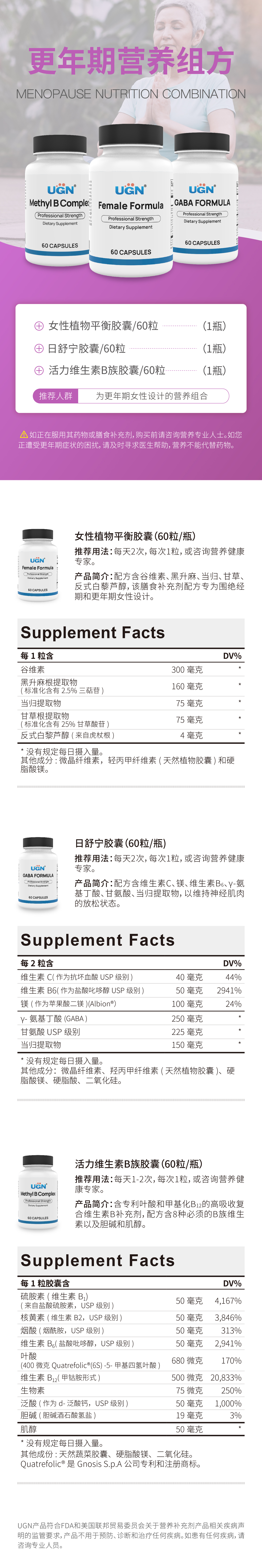 UGN更年期营养组方×1个月(女性植物平衡胶囊*1,日舒宁胶囊*1,活力维生素B族胶囊*1)