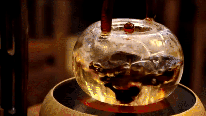 将陈皮放入盖碗中。待水煮沸,便将水注入盖碗中。第一泡先将茶汤浸泡茶具,让陈皮的芳香浸透到茶杯之中,40秒到-1分钟哈。然后第二、三泡出汤时间约1分钟,后面依次30秒出汤即可。