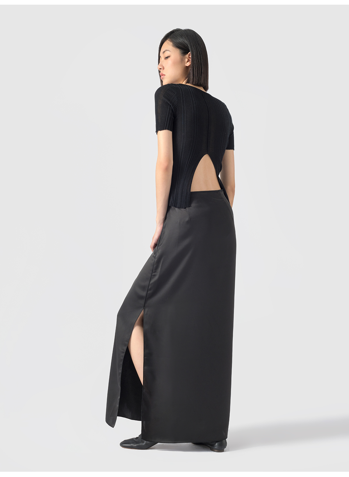 322工房重塑经典天蚕丝螺纹针织短袖T恤2023夏后背开叉针织衫B088