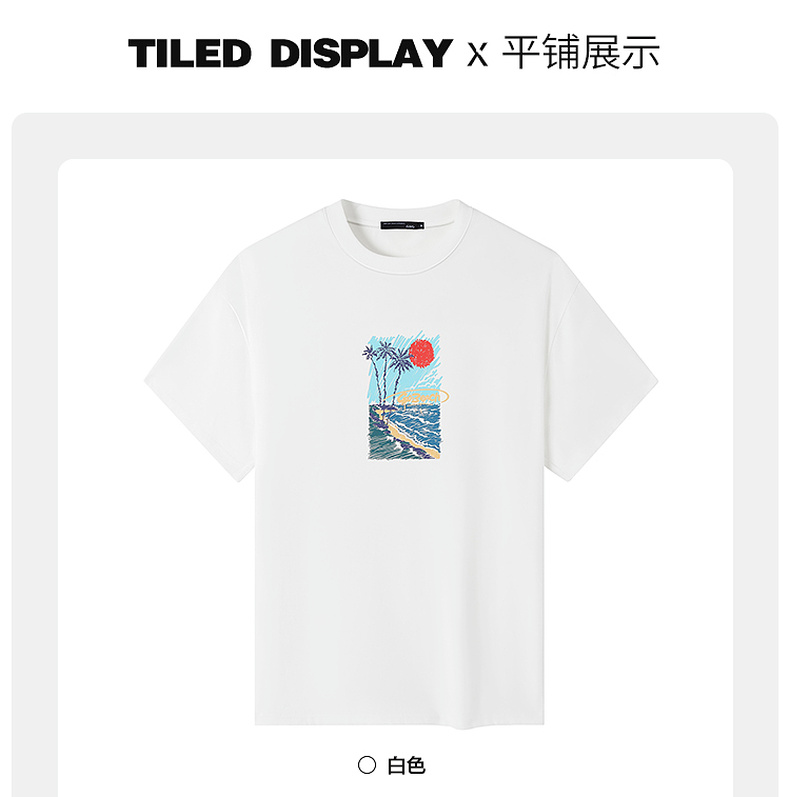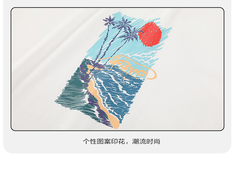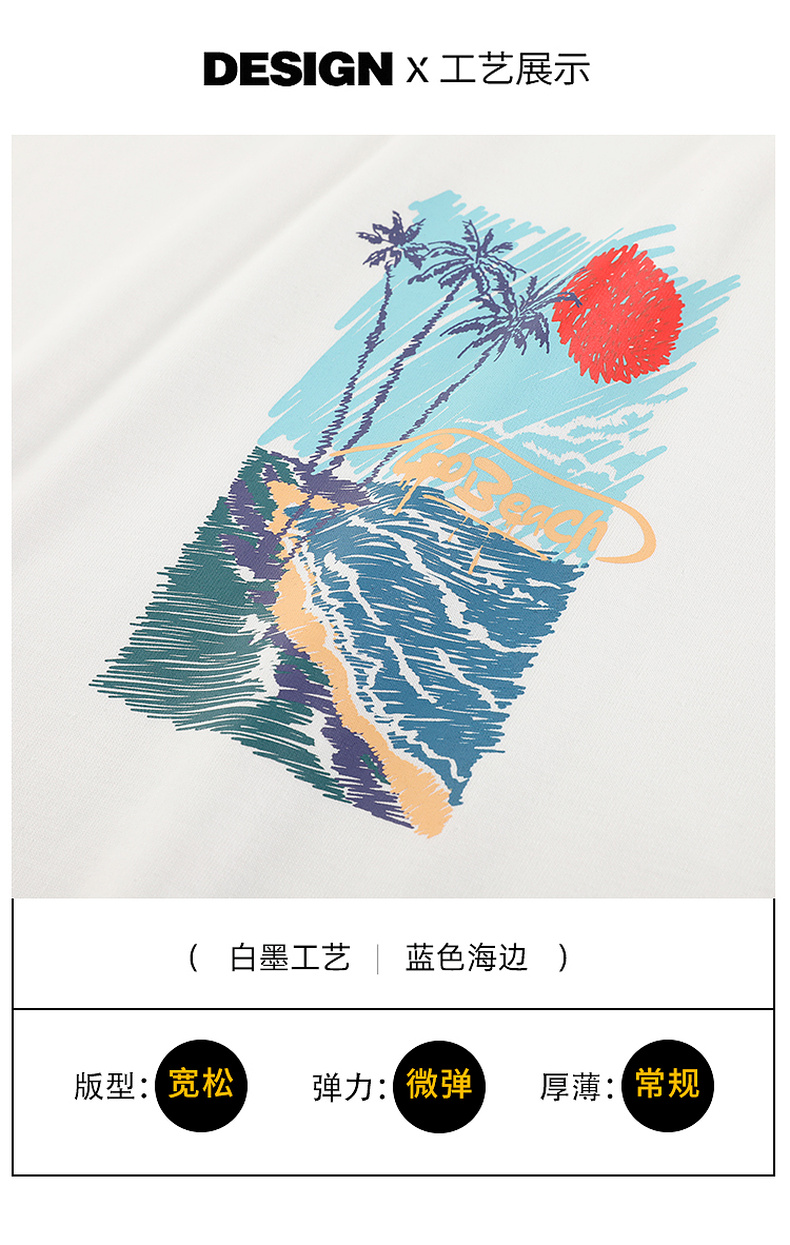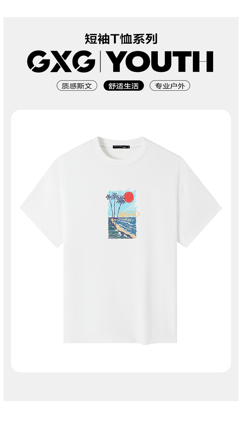 GXG男装【蓝色海边】夏季时尚潮牌宽松男士重磅短袖T恤K&C