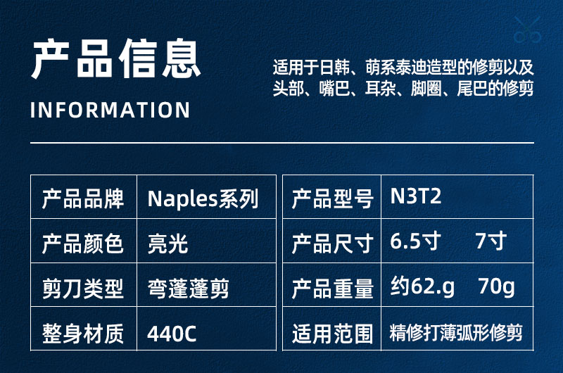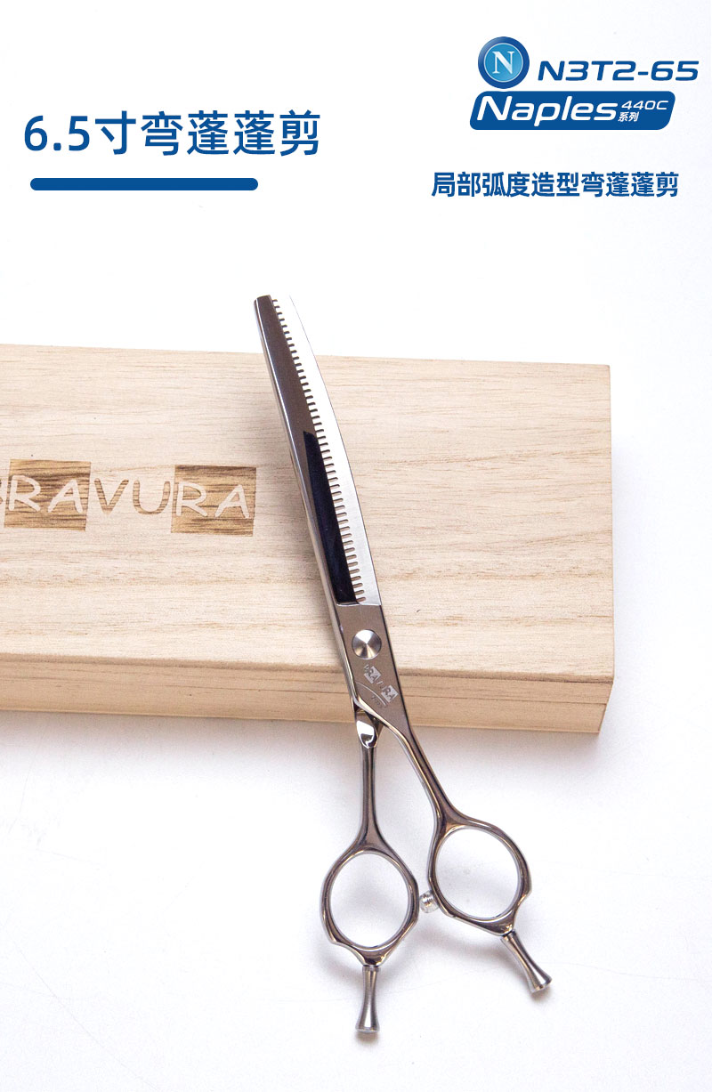 宠物美容剪刀N3T2-65/70弯蓬蓬剪N意大利BravuraGroom-那不勒斯Naples系列狗狗专业剪毛剪刀