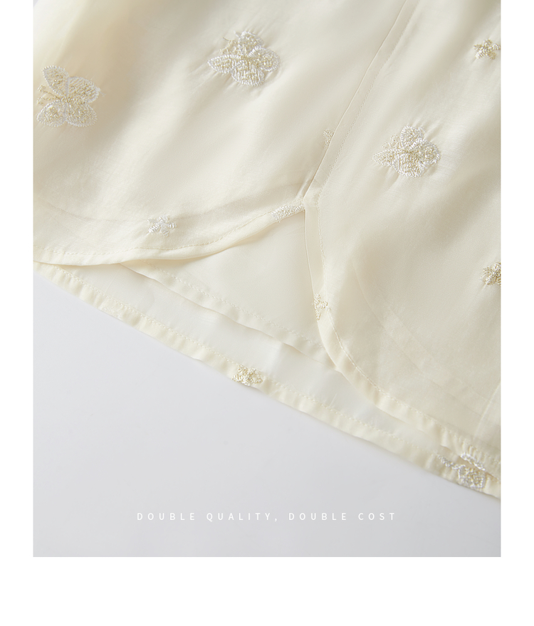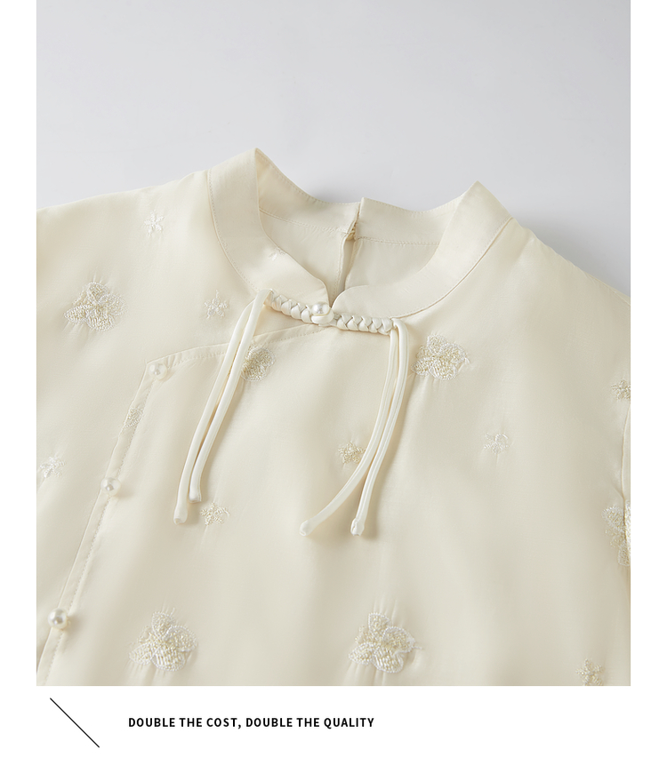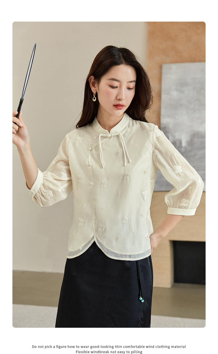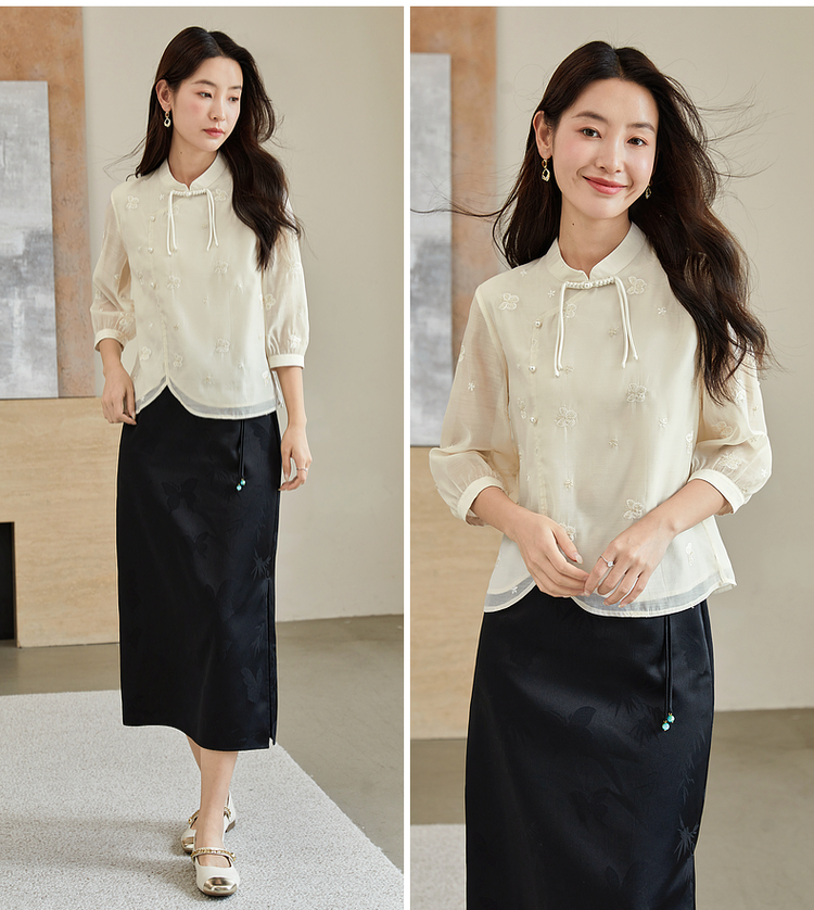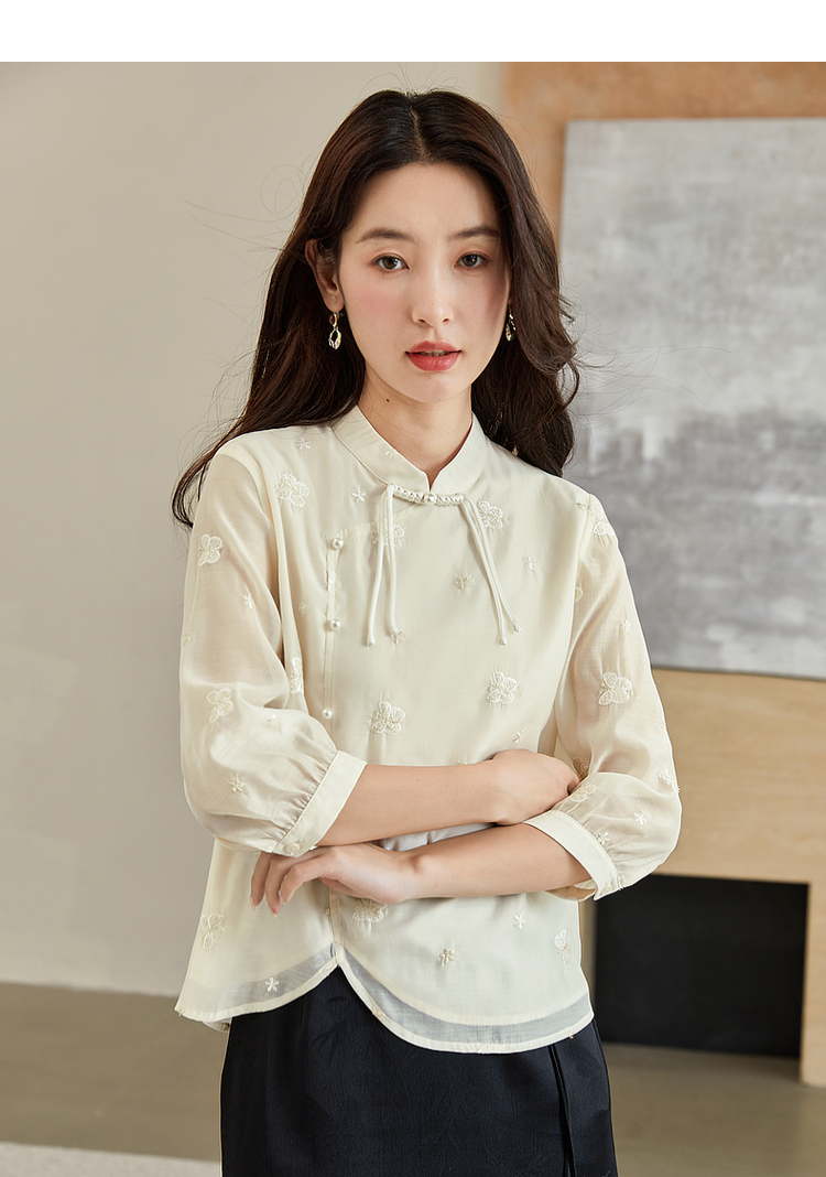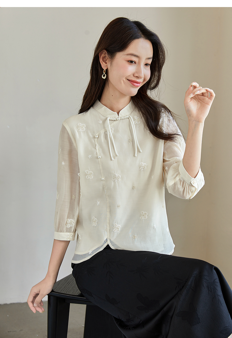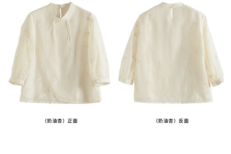 【五折购】熙世界《金缕蝶》国风新中式雪纺小衫秋季蝴蝶刺绣盘扣立领上衣