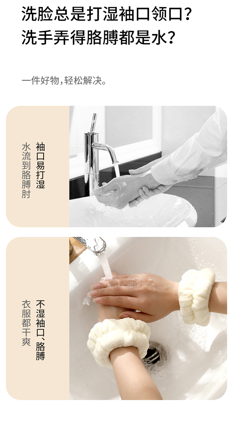 FaSoLa洗漱防湿袖护手腕洗脸手腕带神器吸水到袖口手环吸汗袖带