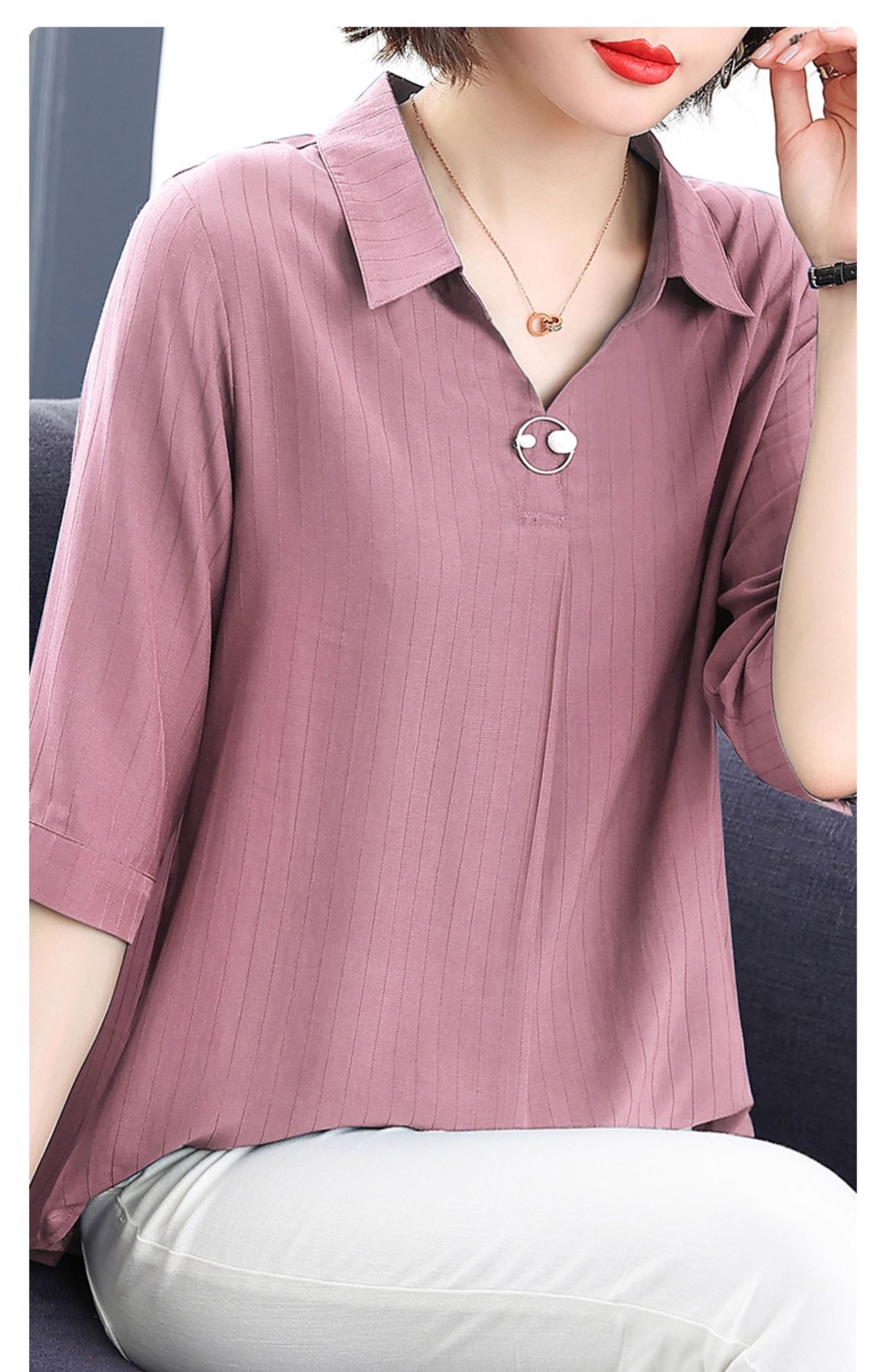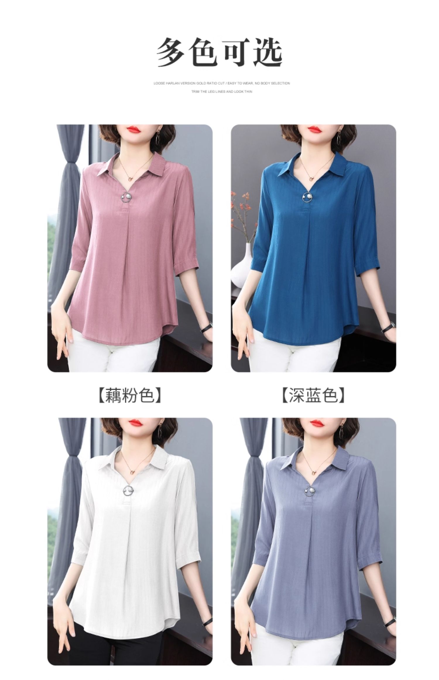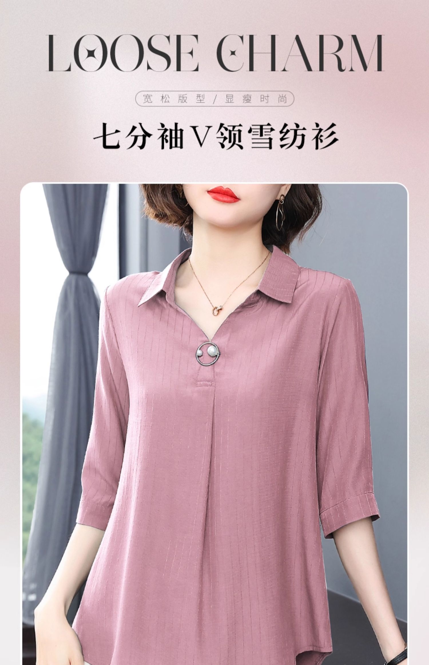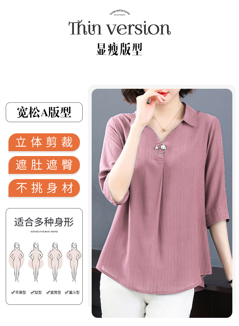 女士中袖雪纺衬衫2026年新款时尚女装夏季短袖七分袖上衣洋气小衫