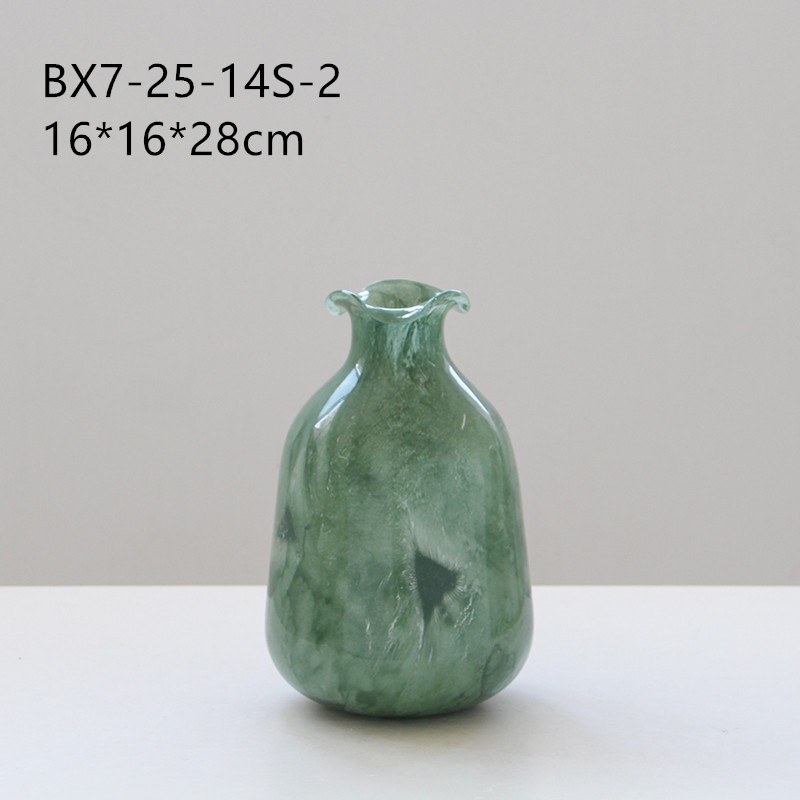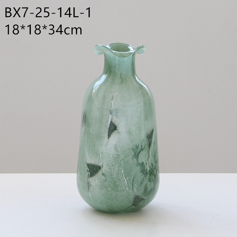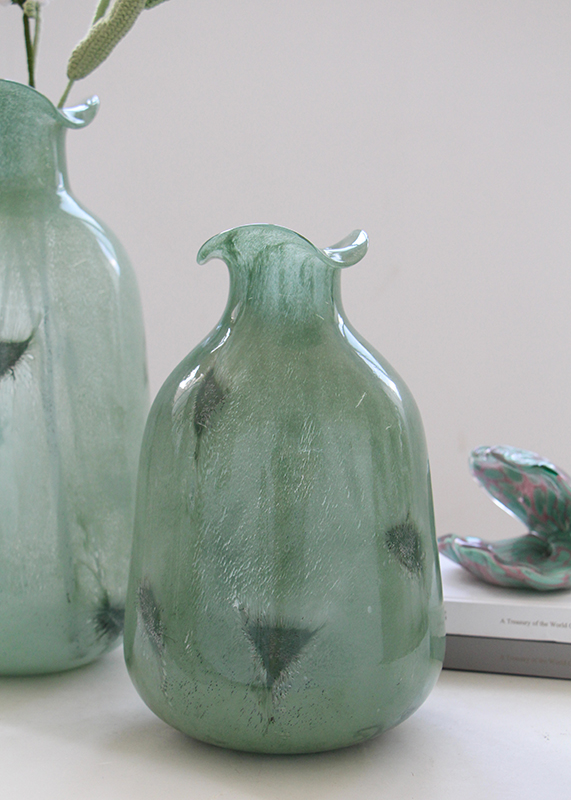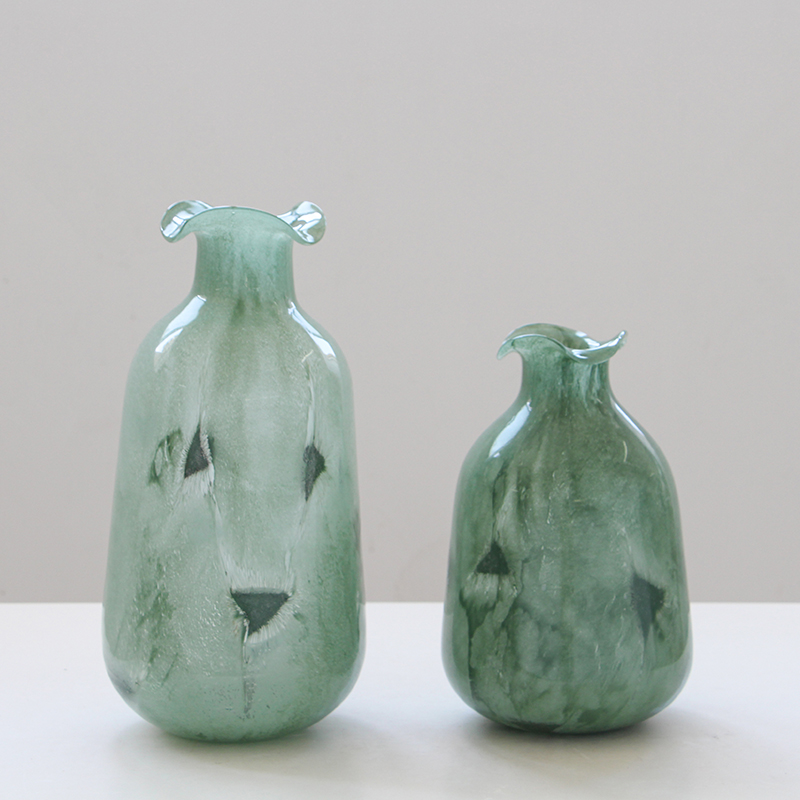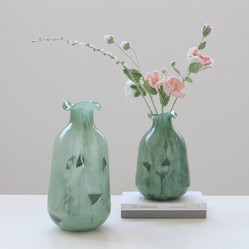 绿色中古玻璃花瓶摆件创意水养客厅电视柜玄关插花装饰品法式琉璃