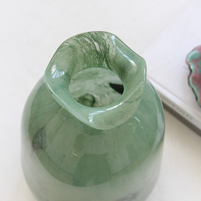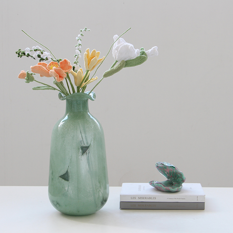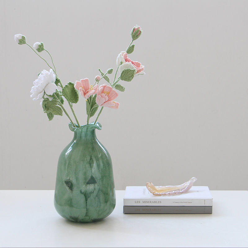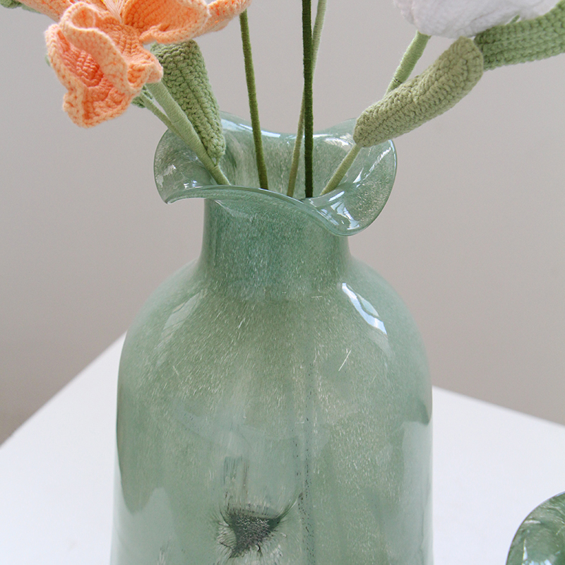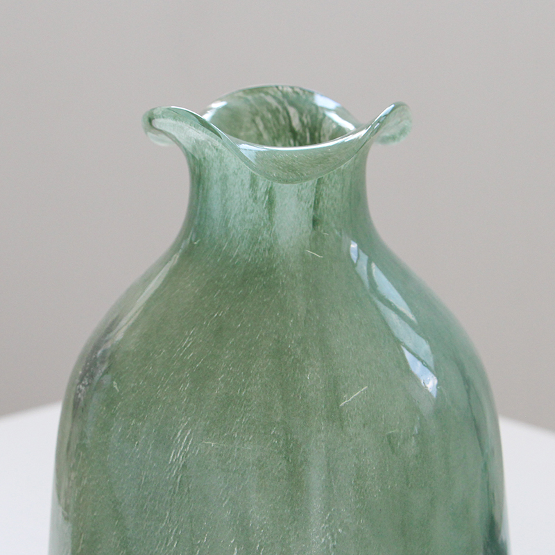 绿色中古玻璃花瓶摆件创意水养客厅电视柜玄关插花装饰品法式琉璃