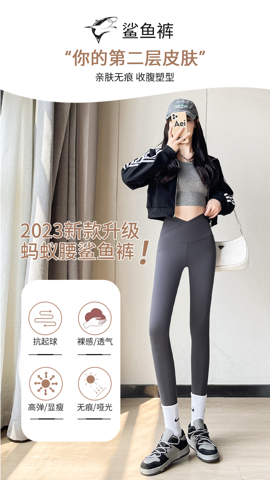 「交叉腰设计!亲肤无痕」鲨鱼裤春秋季外穿芭比长裤 交叉高腰收腹提臀修身显瘦女士紧身打底裤下装