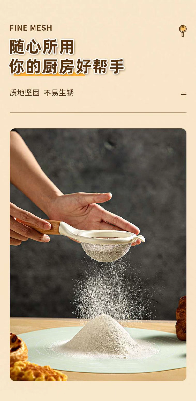 木柄 手持面粉筛8cm 筛网蛋液筛面粉筛子 家用厨房烘焙工具 1个