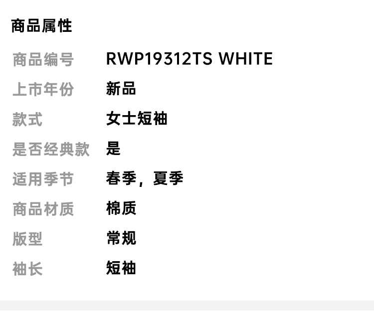 RICHMOND 女士棉质字母印花圆领短袖T恤 白色 RWP19312TS WHITE