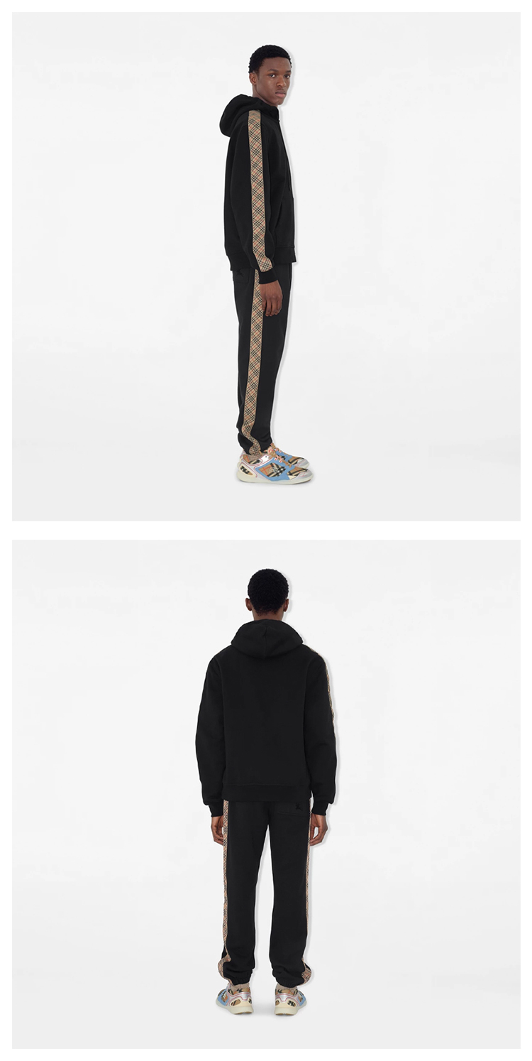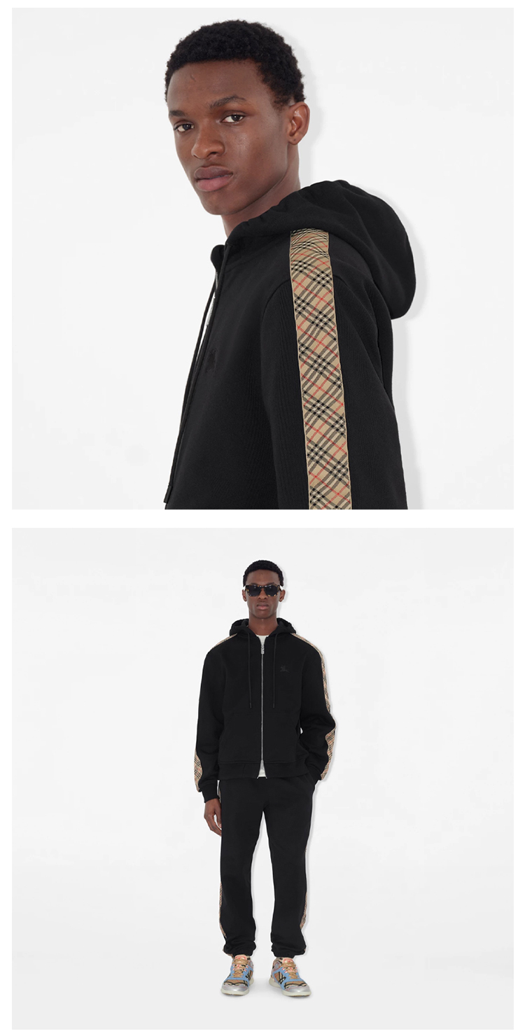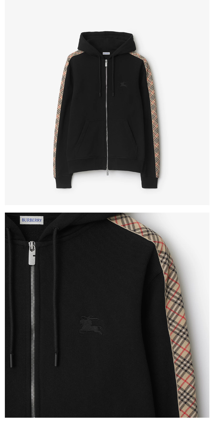 BURBERRY 巴宝莉 男士马术骑士徽标刺绣格纹装饰棉质拉链连帽卫衣 黑色 8110790 A1189