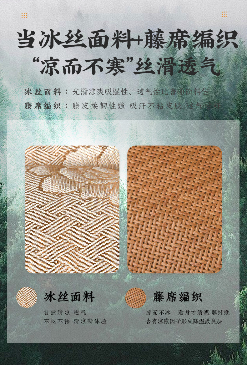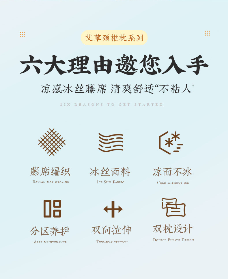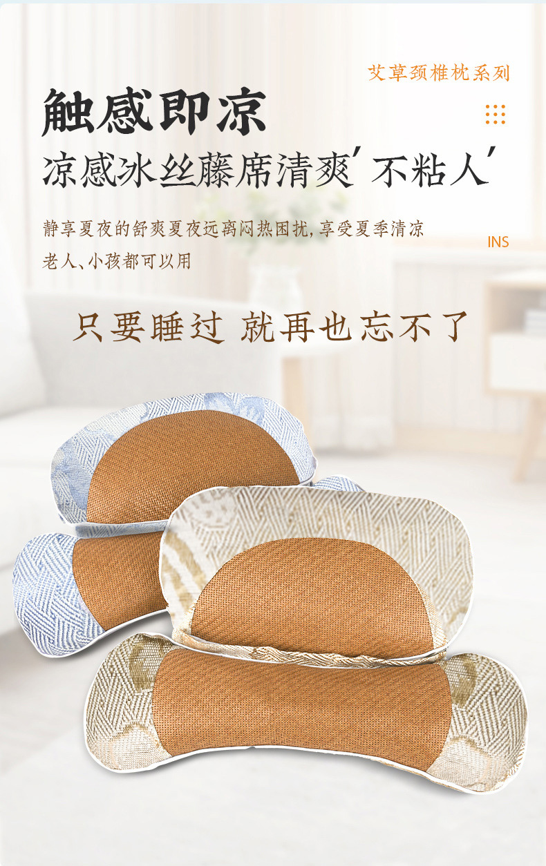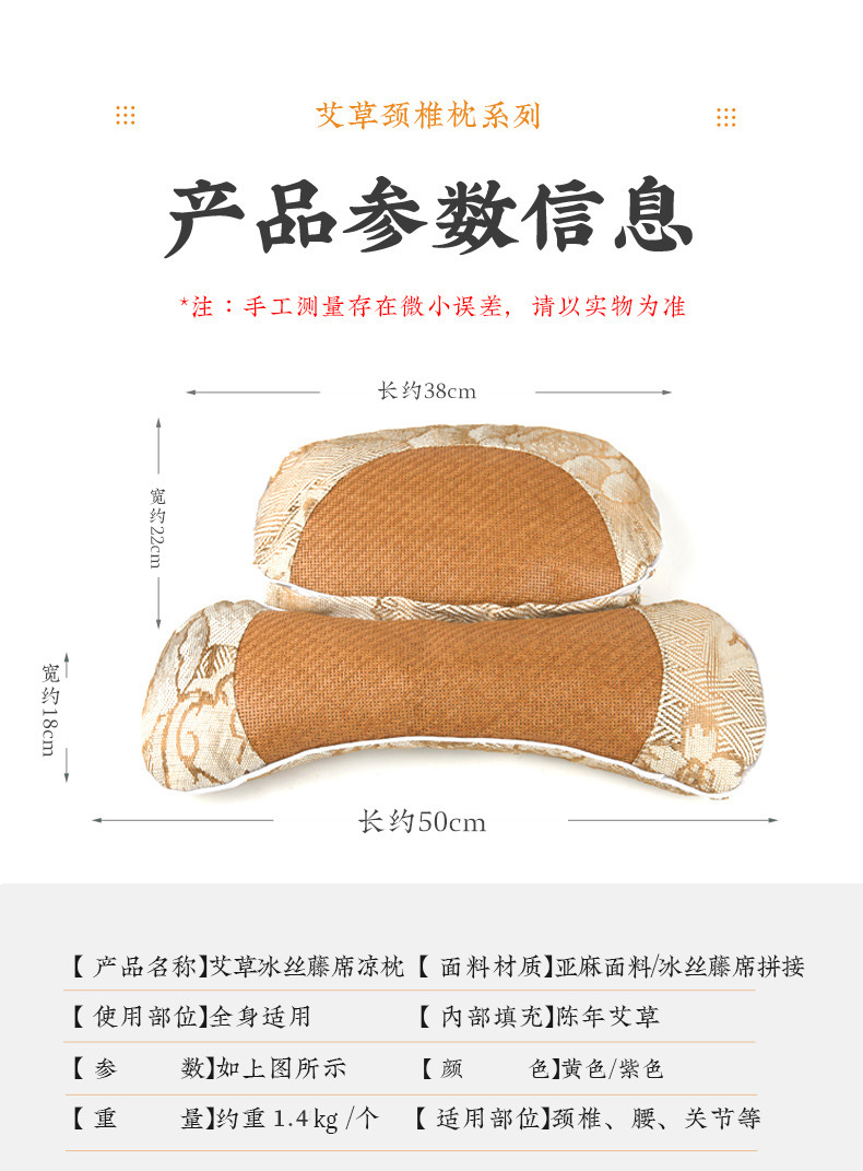 【分仓直发包邮】艾草冰丝藤席连体枕(颜色可选)