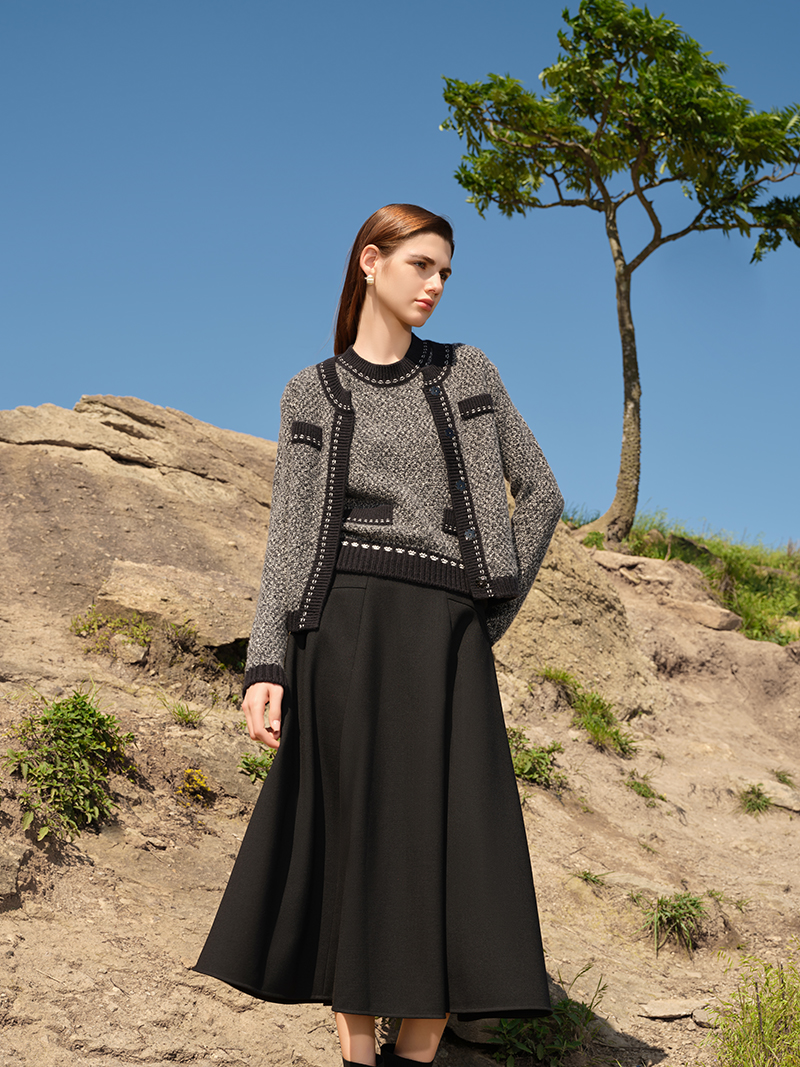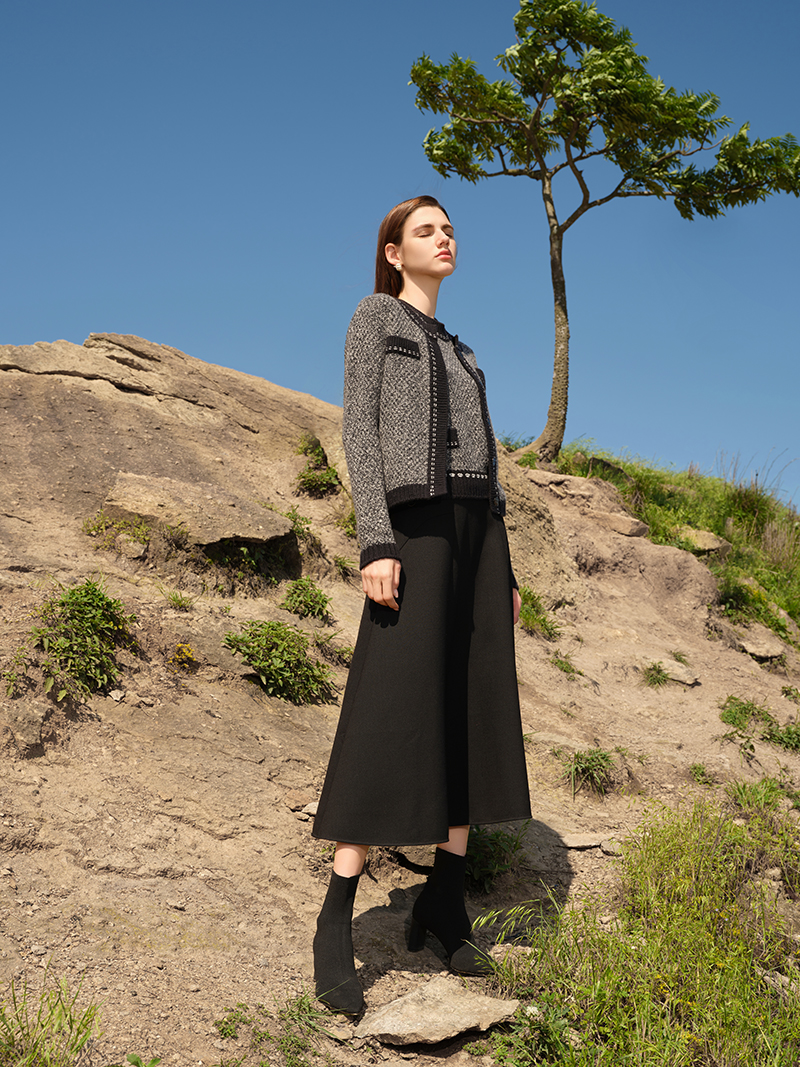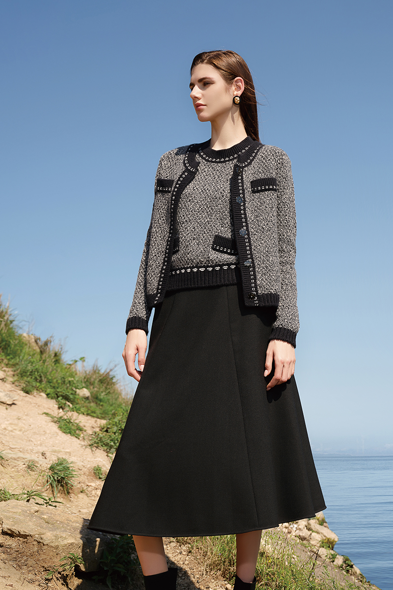 【小香风羊绒开衫外套】羊绒世家秋冬新品女士100%山羊绒单排扣针织小外套