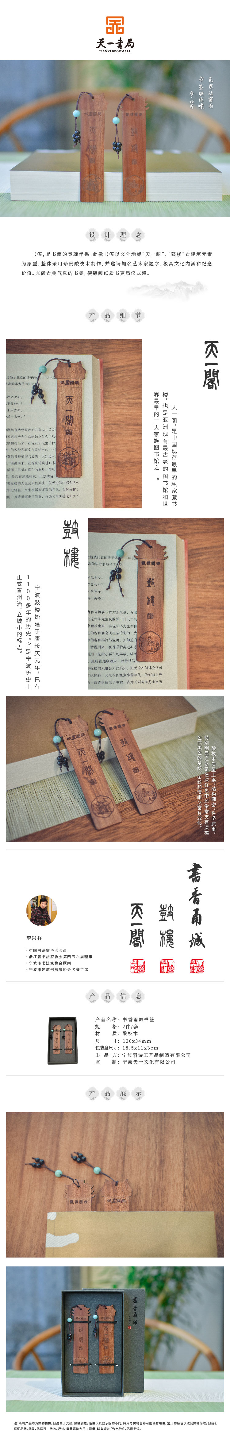 羽诗制造出品 书香甬城书签宁波天一阁、宁波鼓楼书签