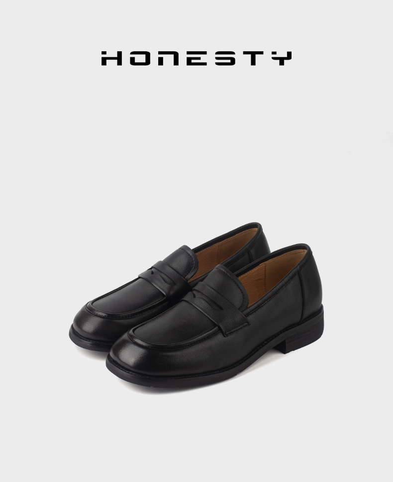 和诚行 2024秋冬新款英伦风一脚蹬复古小皮鞋女百搭乐福鞋1200030