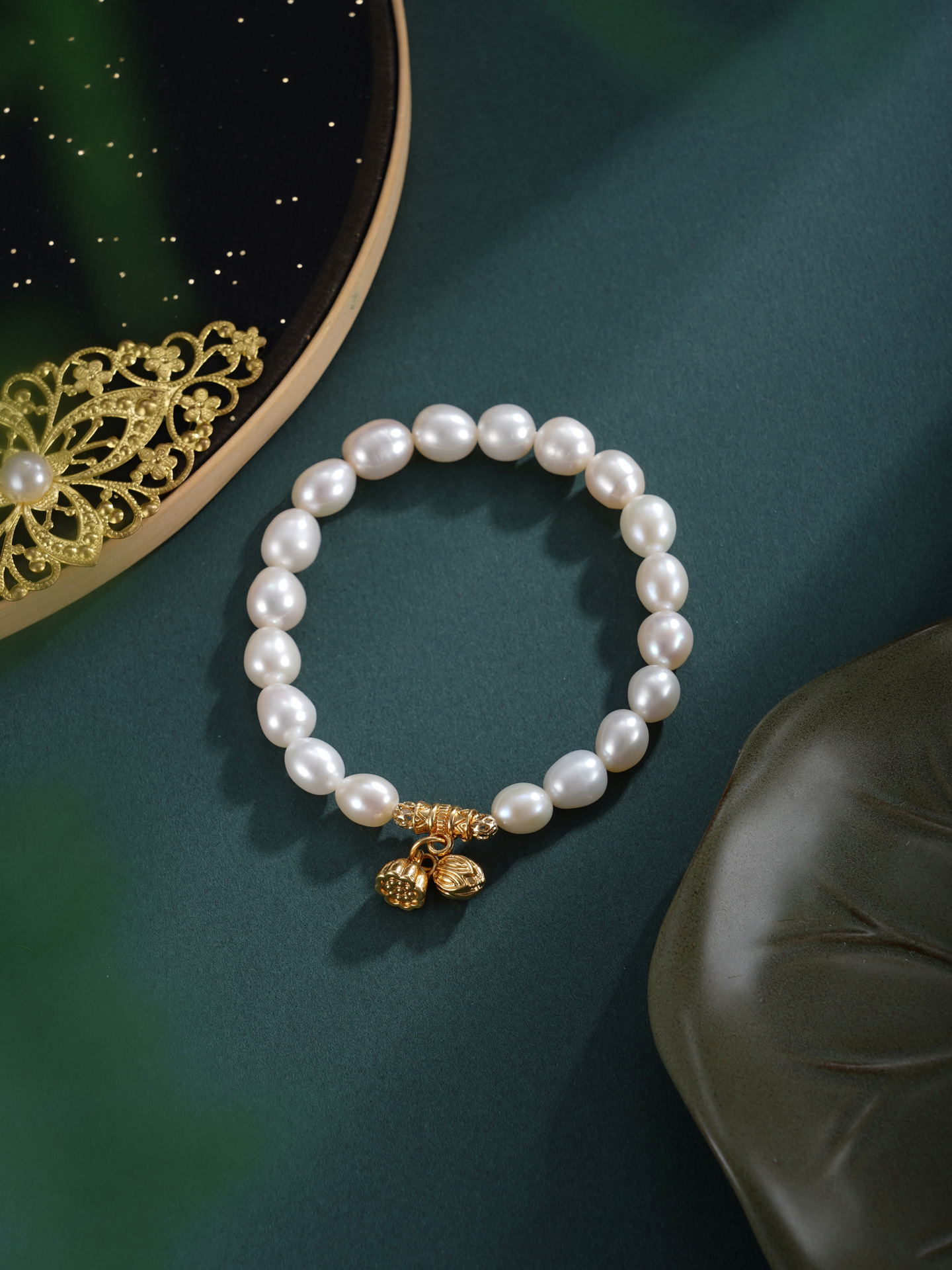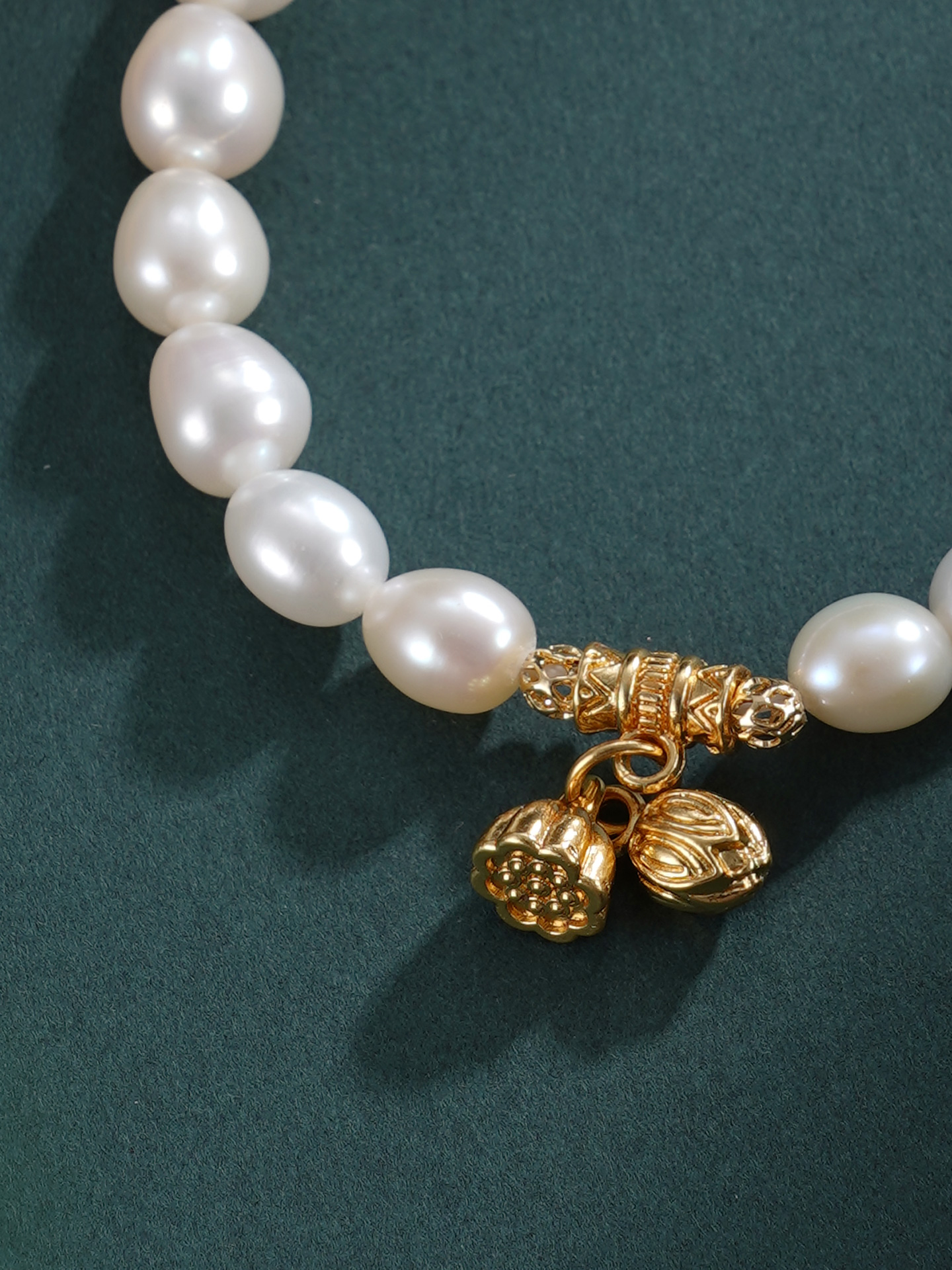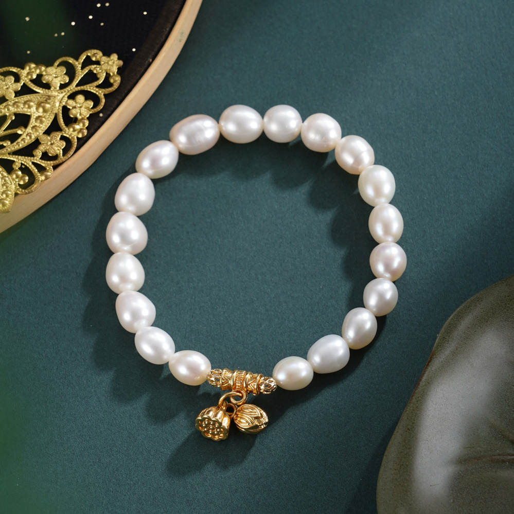 子佩集【两世永欢】珍珠惜王妃手链【ZZSL018】7.5-8.5mm珠镀金莲蓬2601