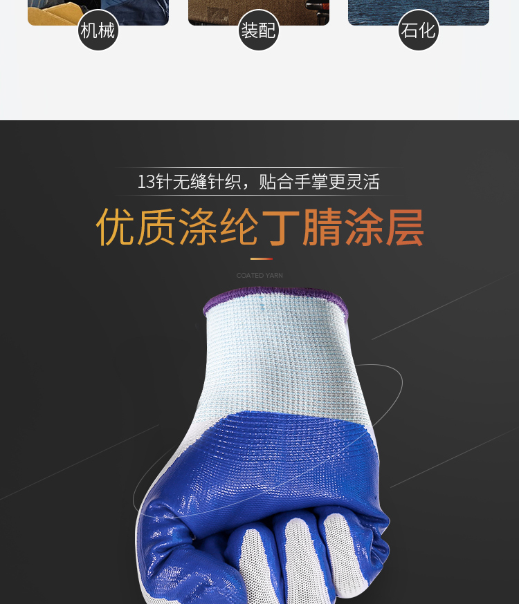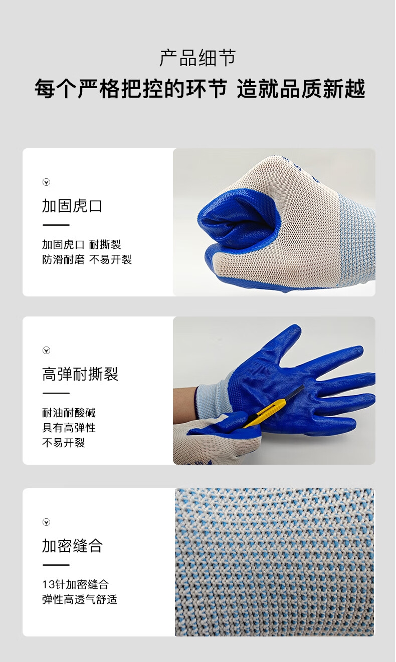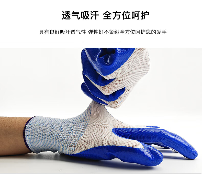 丁腈浸胶劳保手套 12双/包丁腈耐磨耐油挂胶手套 12双手套手套工作劳保耐磨丁腈胶皮白劳动防滑耐用干活加厚工工地薄款浸胶