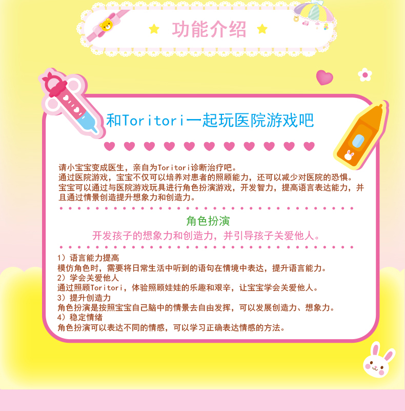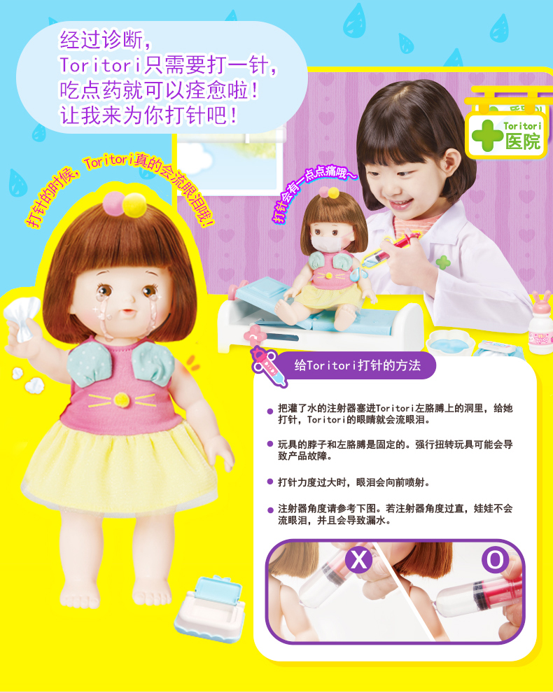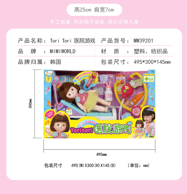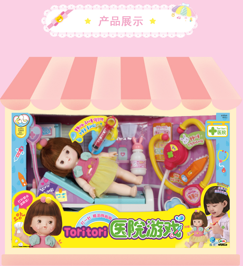 Mimiworld Toritori 医院游戏 娃娃仿真婴儿女童玩具医院场景打针游戏过家家 3岁+