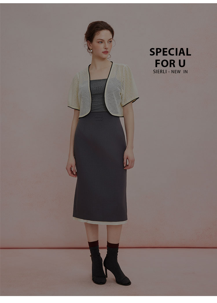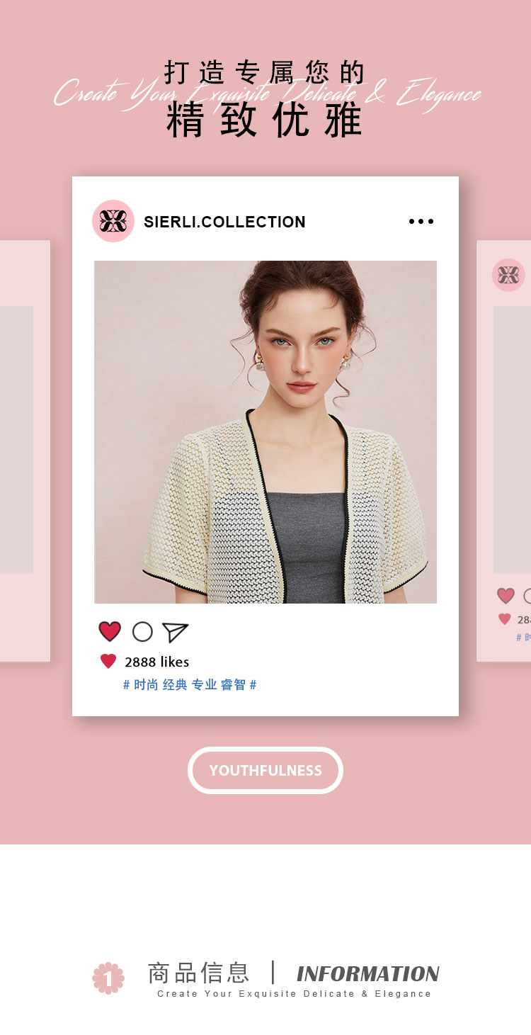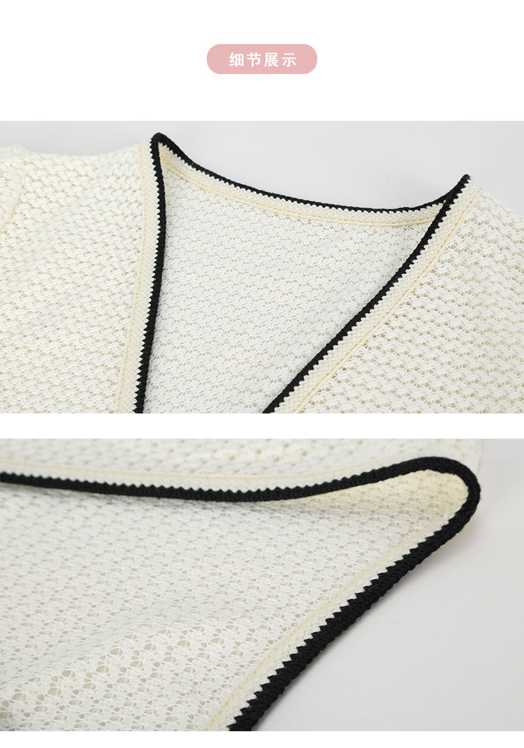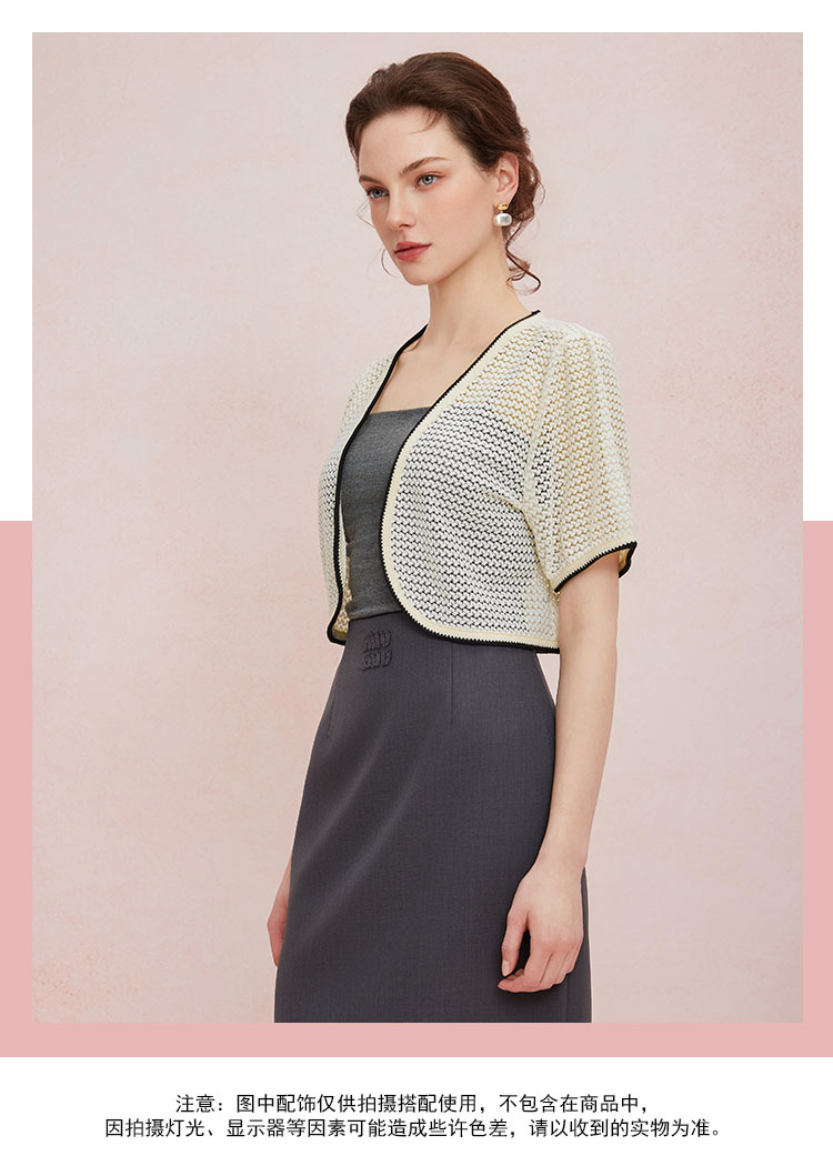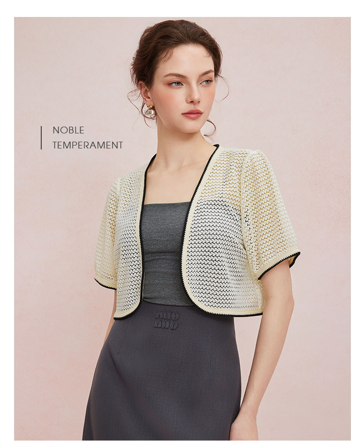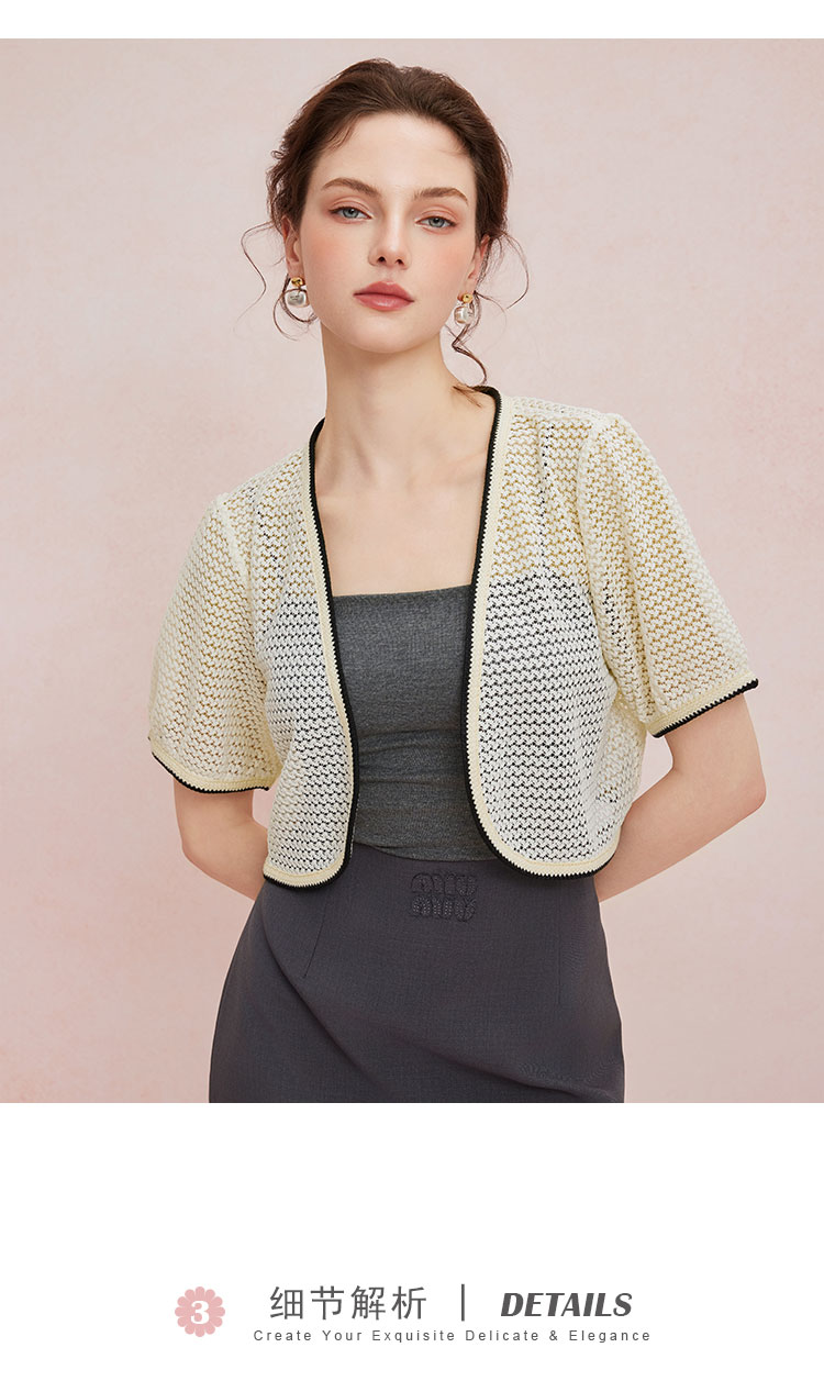 QF103斯尔丽2025夏季新款蕾丝外搭披肩小衫撞色边宽松百搭开衫空调衫