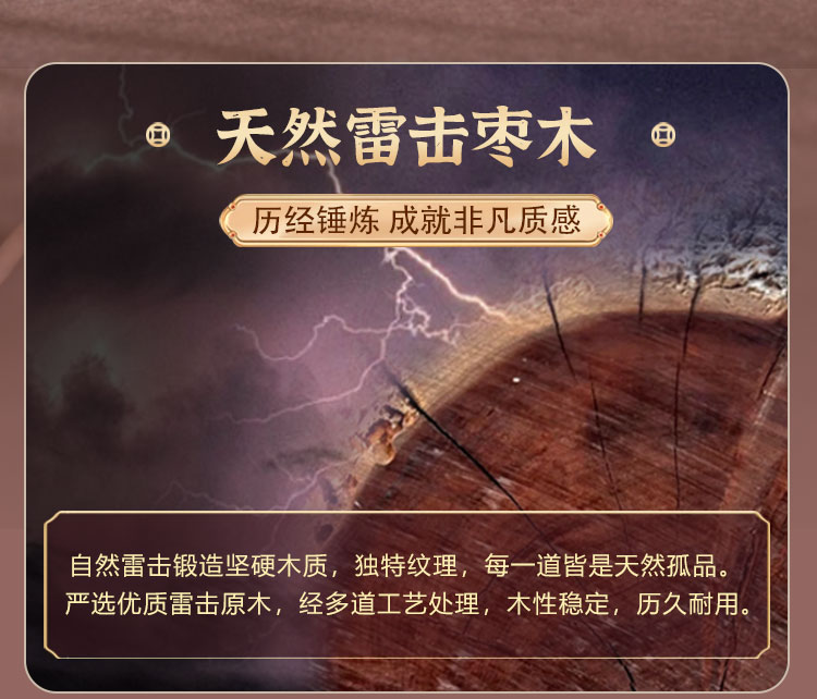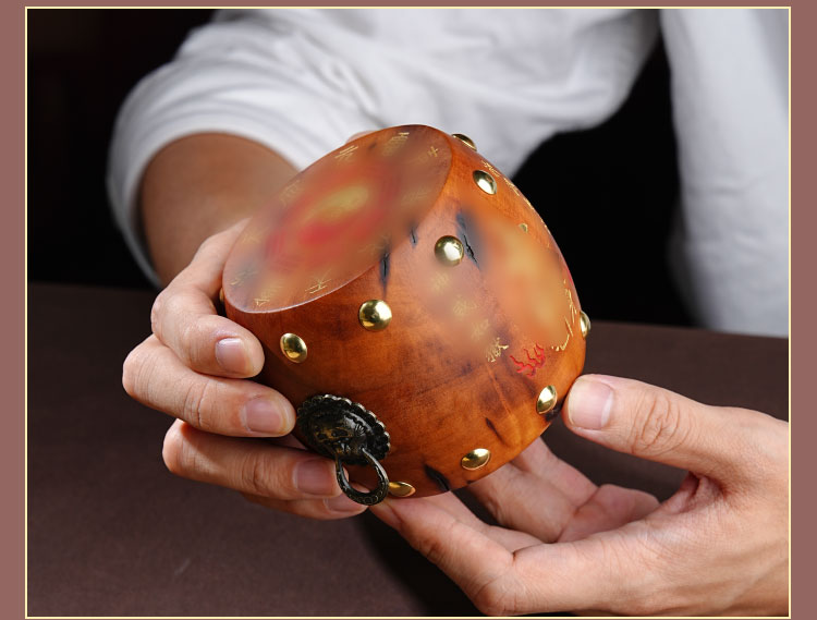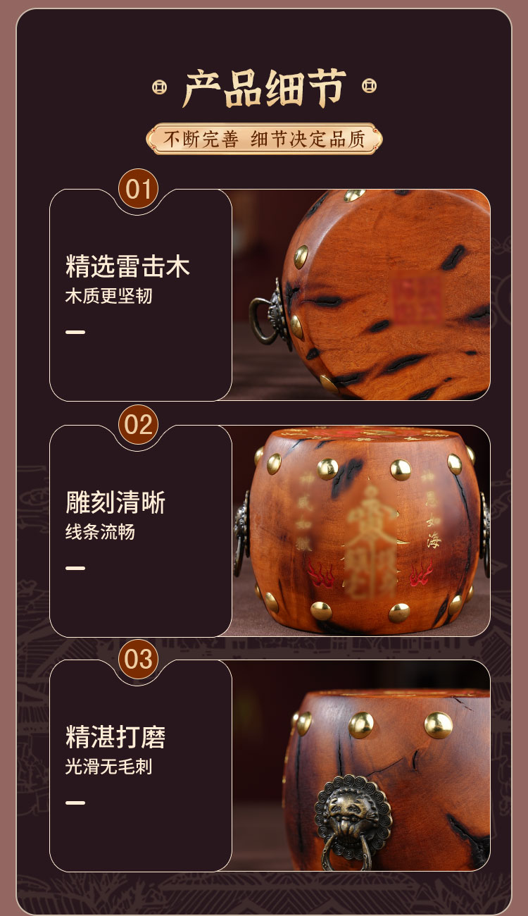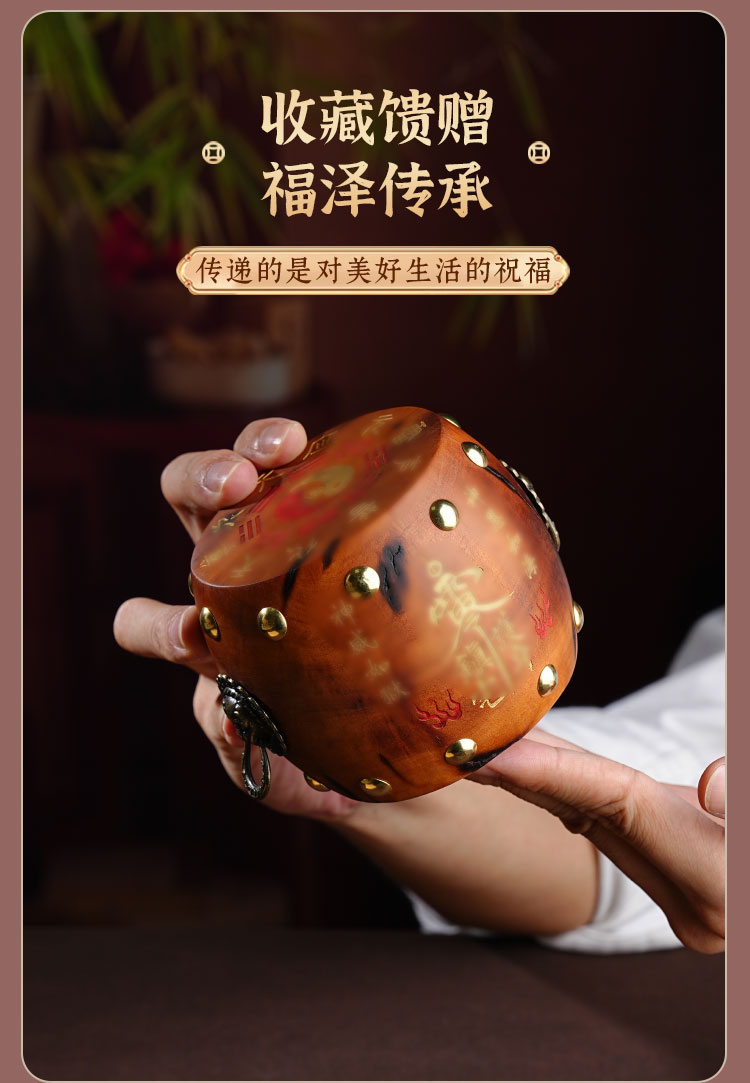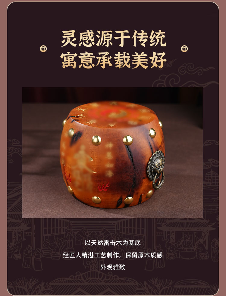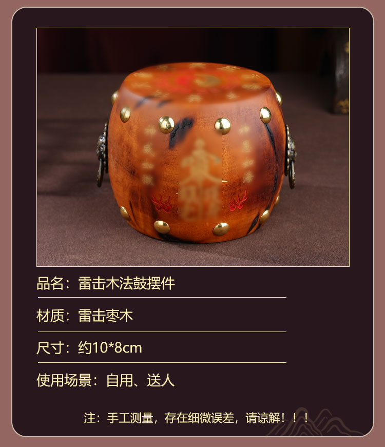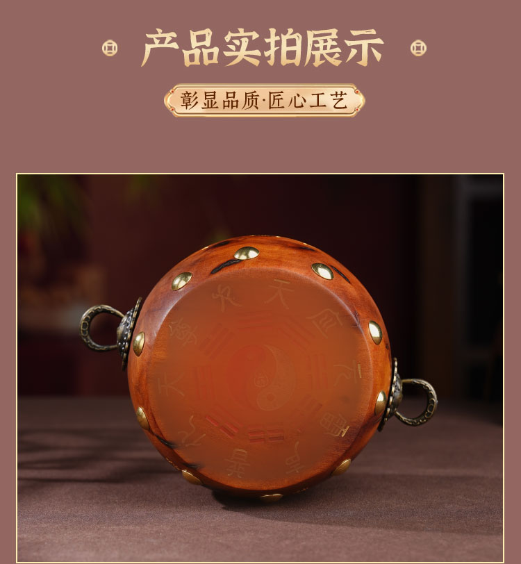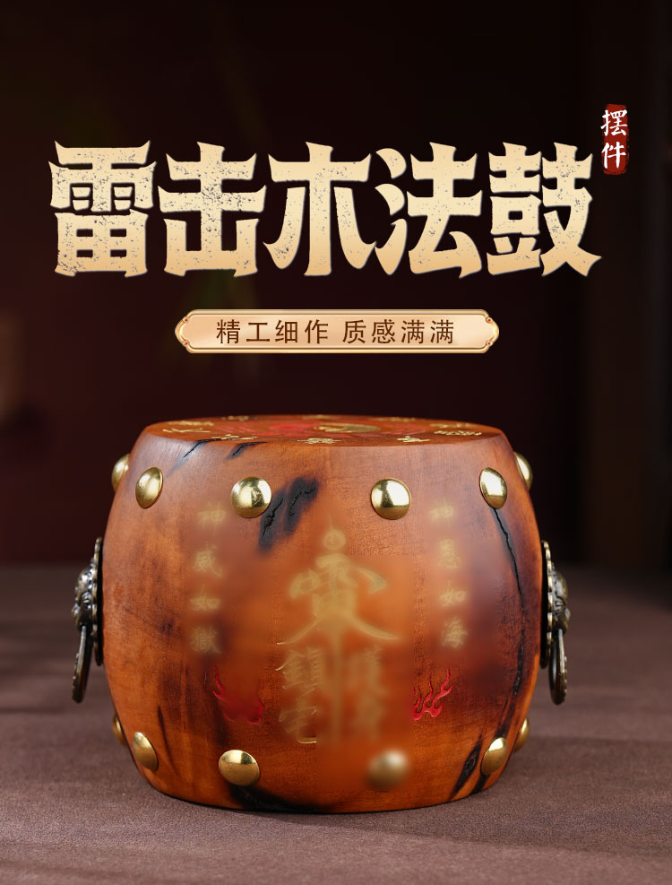 中式雷击木法鼓摆件枣木雕刻裂纹手把件传统国学工艺品摆件