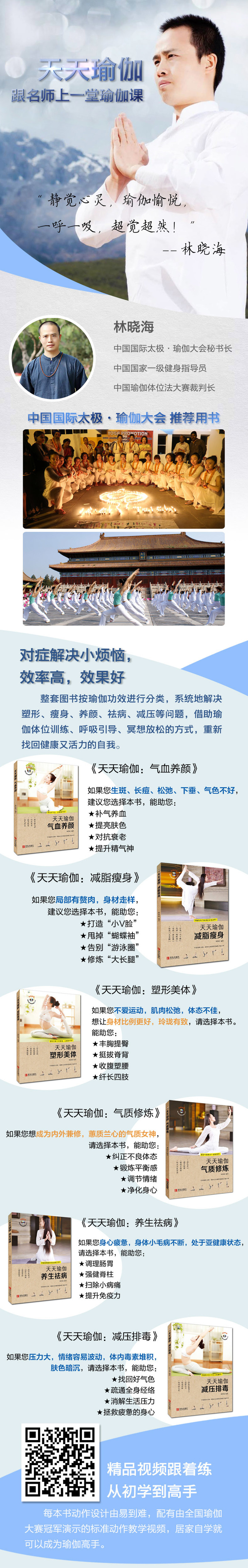 本书为中国国际太极·瑜伽大会秘书长、禅瑜伽体系创始人林晓海先生编著,属“天天瑜伽”系列书的“气血养颜”篇。练习瑜伽,能够使我们的心里、生理达到和谐统一的状态,从而达到补气益血、提亮肤色、对抗衰老和提升精气神的作用。