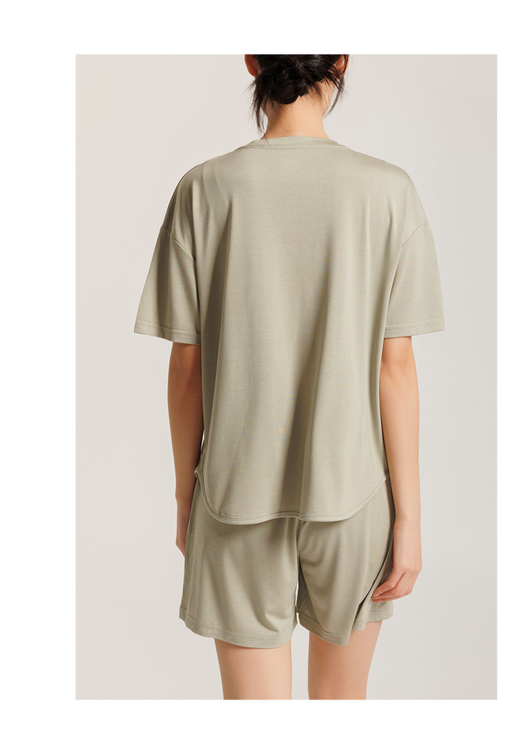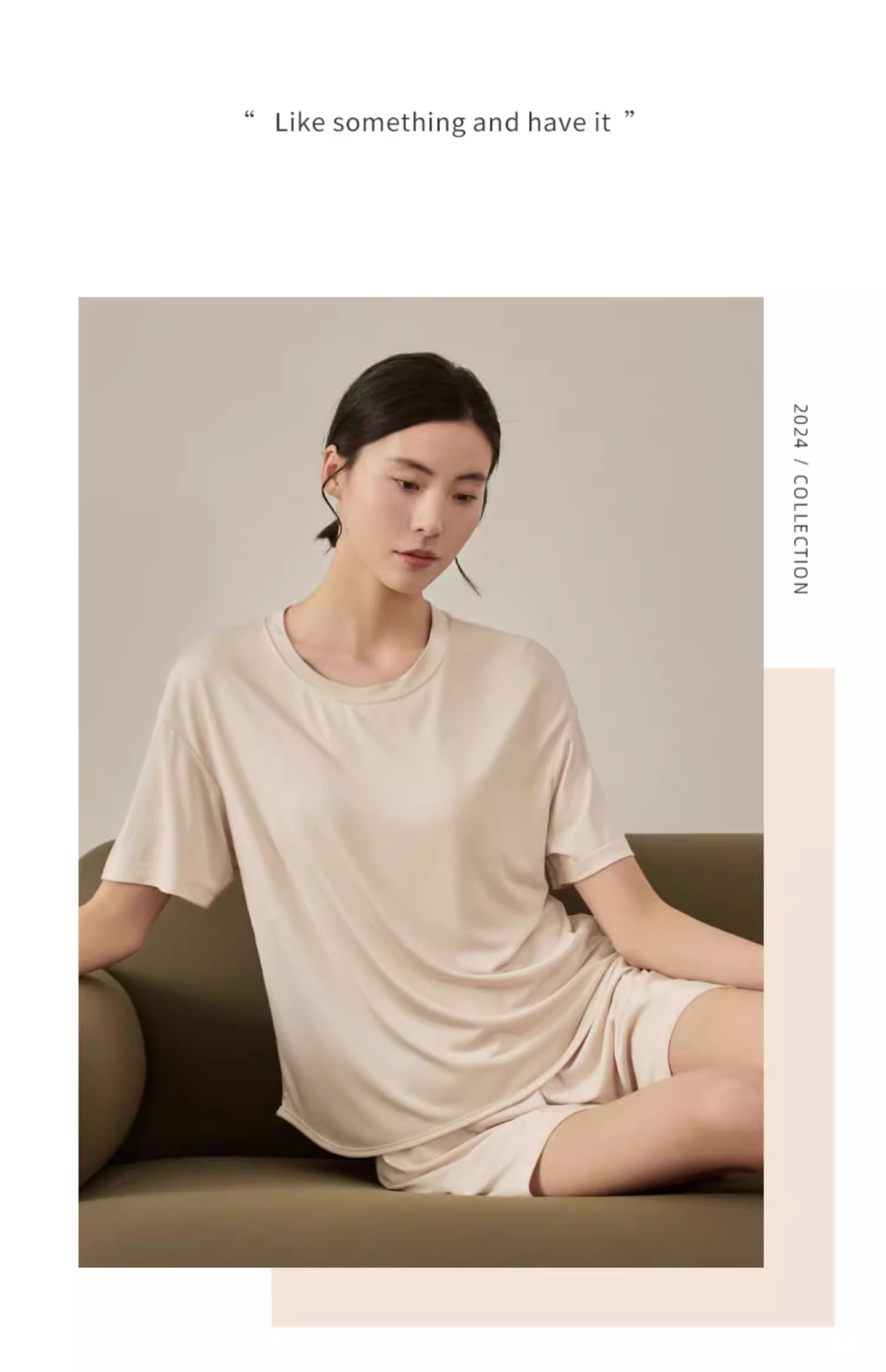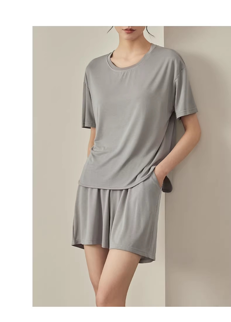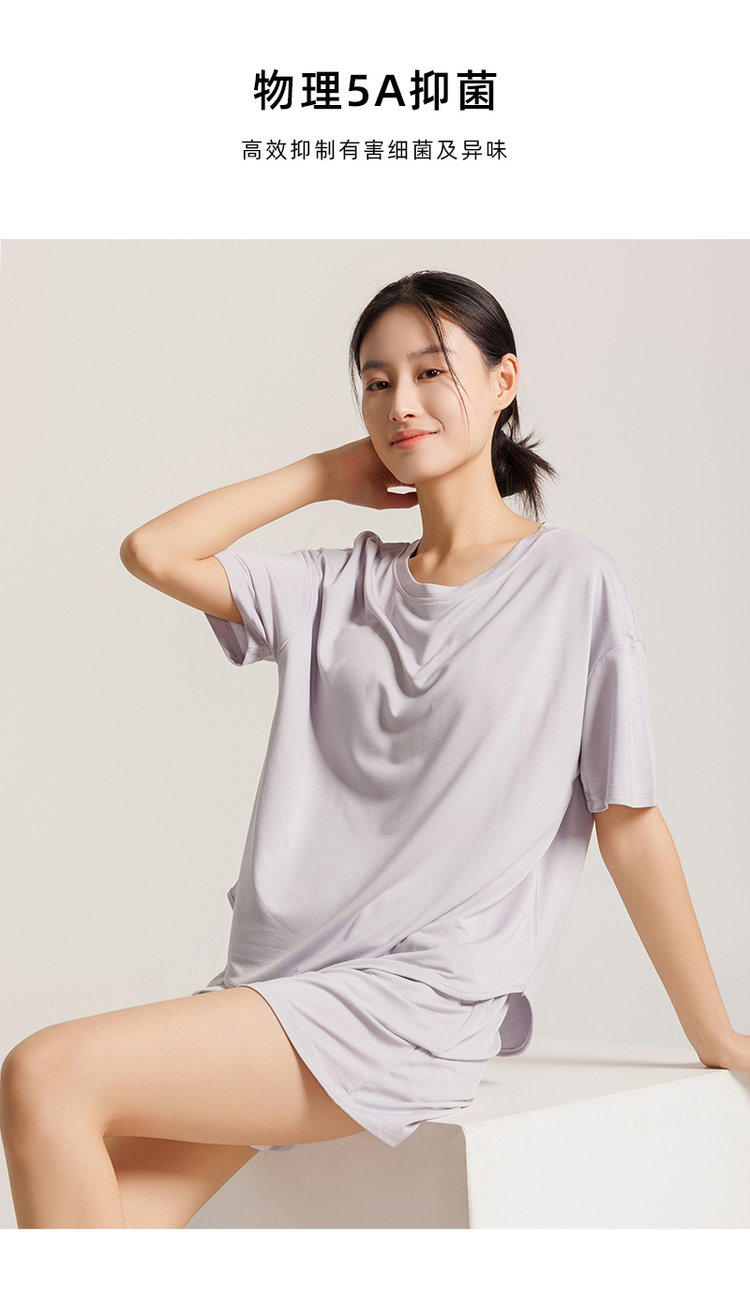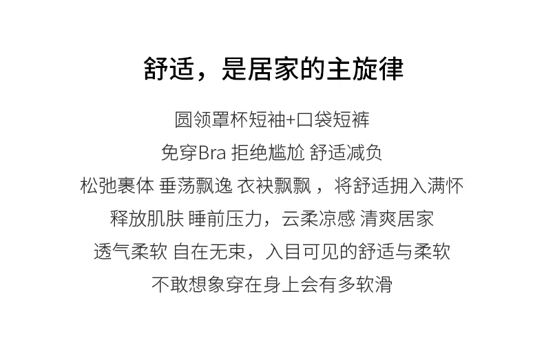 【女款居家 冰丝短袖套装】 自带胸垫 柔滑亲肤 云感轻盈 凉感透气