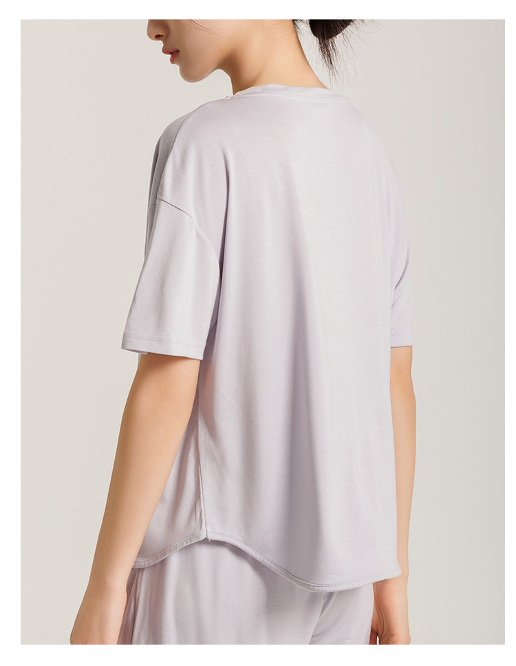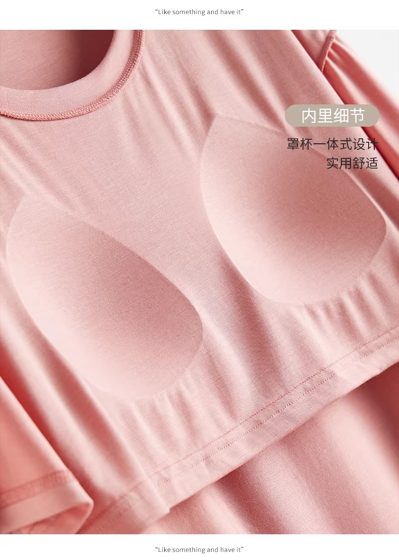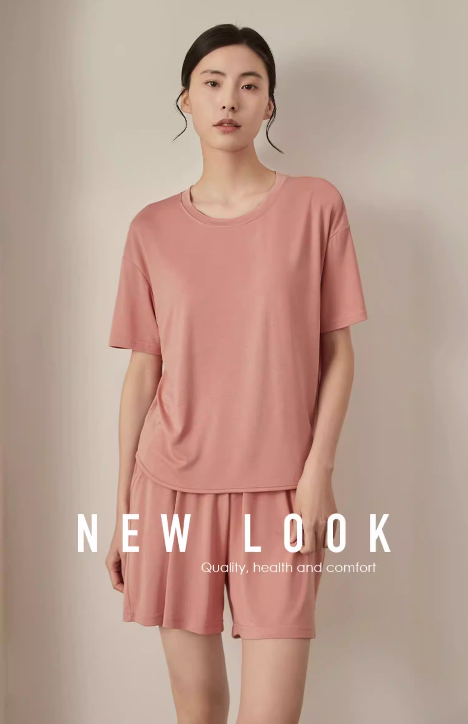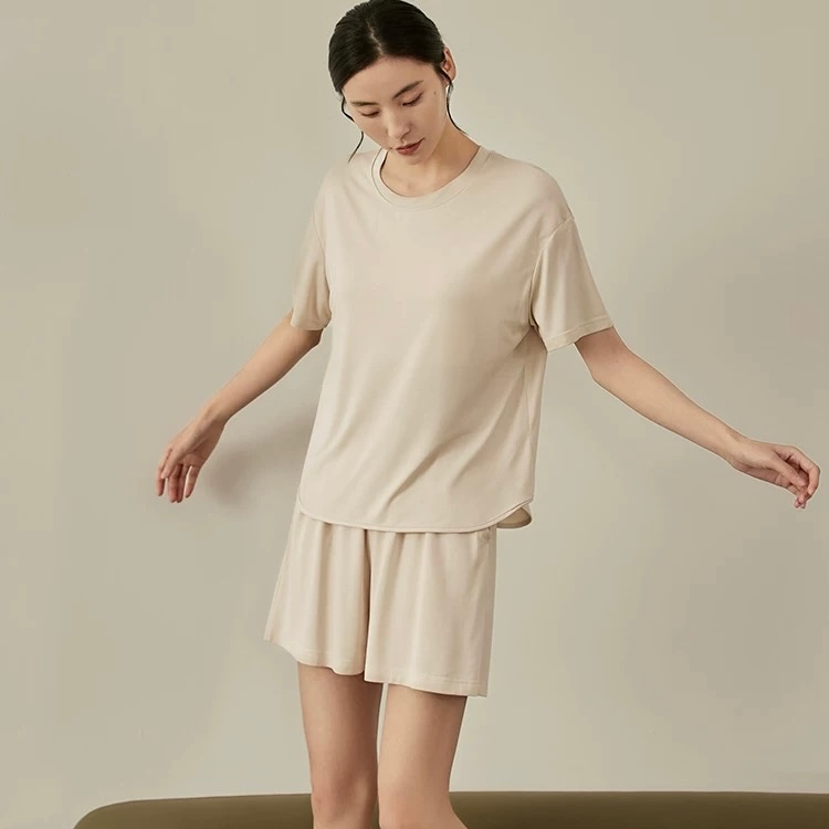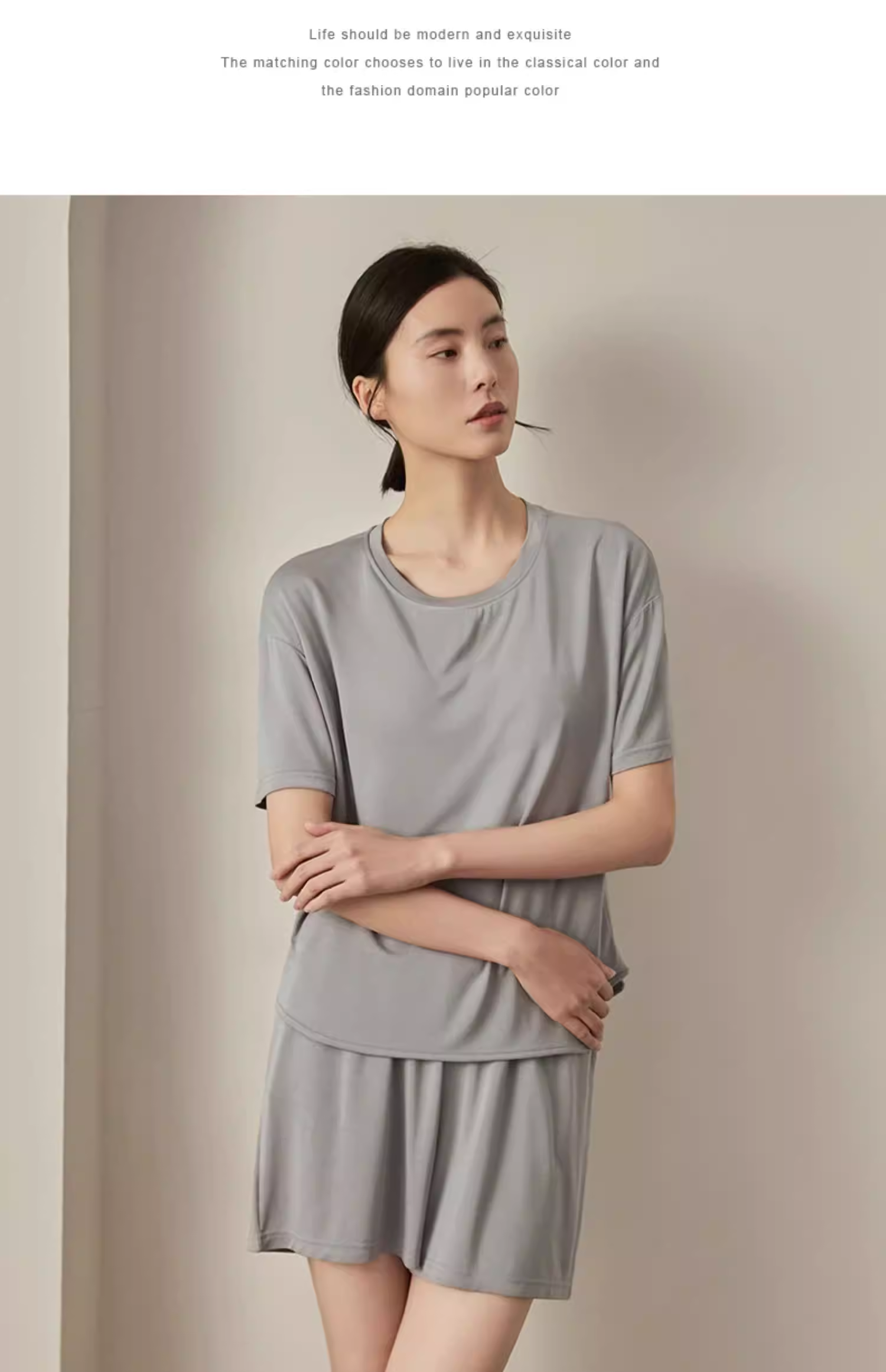 【女款居家 冰丝短袖套装】 自带胸垫 柔滑亲肤 云感轻盈 凉感透气