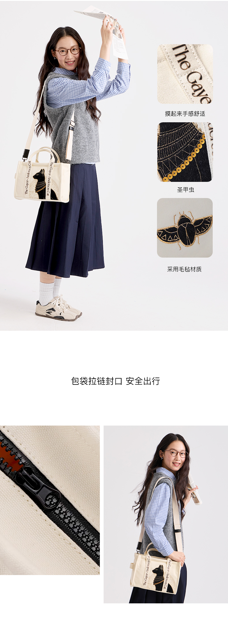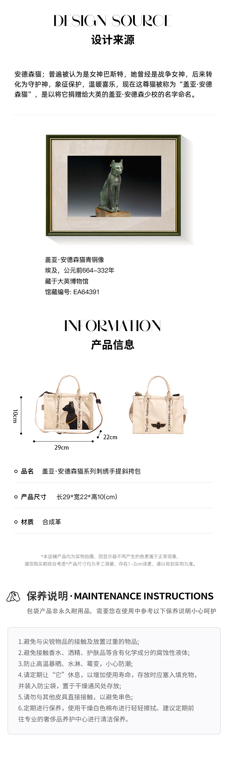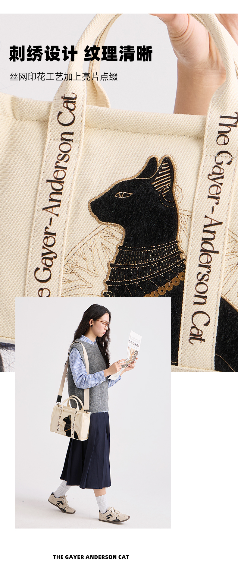 大英博物馆盖亚安德森猫系列刺绣手提斜挎包-米色