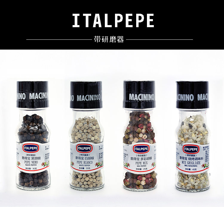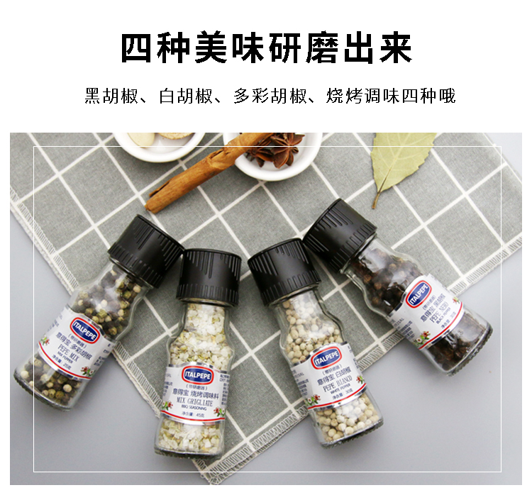 意大利意得宝多彩胡椒/白胡椒/黑胡椒/烧烤调味料系列 自带研磨芯 方便快捷 033263/033264/033265/033266