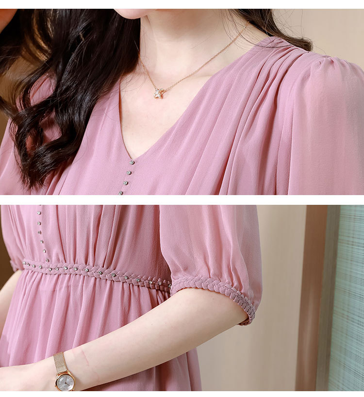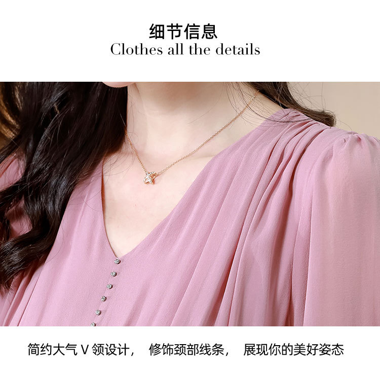 V领荷叶边洋气修身,显瘦丝绒长袖小衫KQL-2365