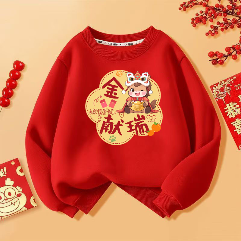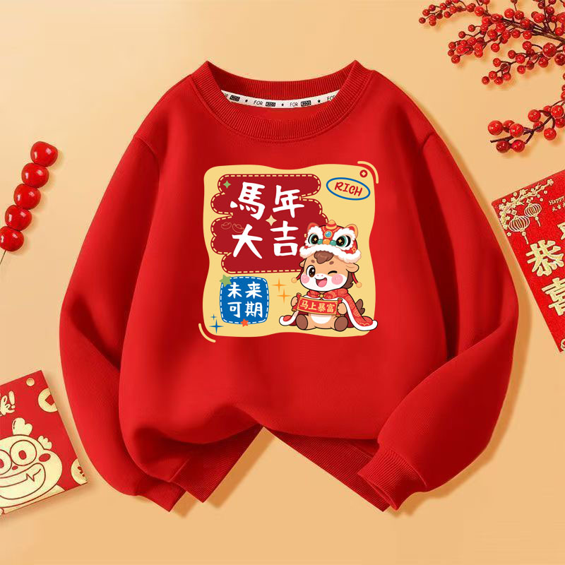 59.9任选2件!!!【2026马年过年服拜年服】大红色加绒男女同款儿童过年春节拜年服