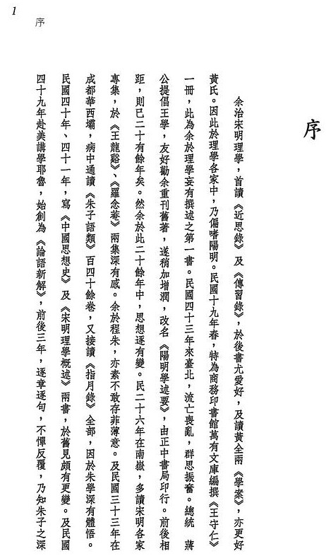本書共收文十七篇,以討論有明一代之理學思想為主,尤以陽明一派為中心。特於王龍谿、羅念菴兩人平日交往言論異同,詳加闡申,以見浙中江右王門之歧趨所在。公安三袁學一篇,從其學術思想之基本處發論,則其文學上成就之利弊得失高下深淺,亦可言外得之矣。蕺山一案,所收材料,多為梨洲遺棄不錄者,從此可深窺梨洲所為學案之偏失處。編末附〈朱子學流衍韓國考〉一文,詳論李退溪、李栗谷、宋尤菴、韓南塘四人。宋尤菴以前皆在明代,惟韓南塘已及清初,可見宋明理學成就影響遠及韓國以至日本之一斑。