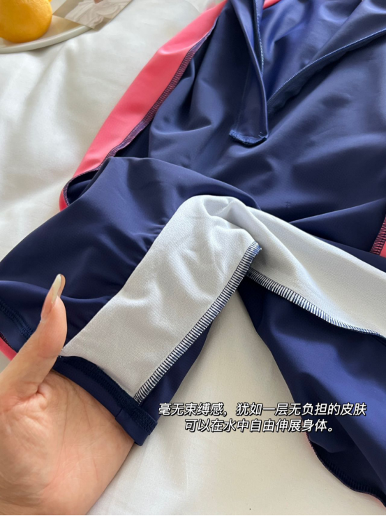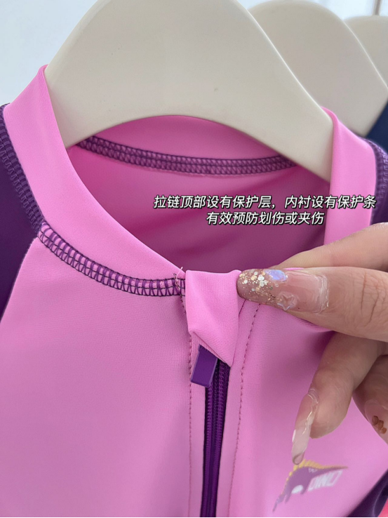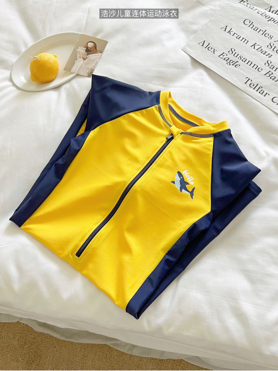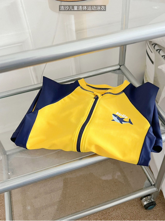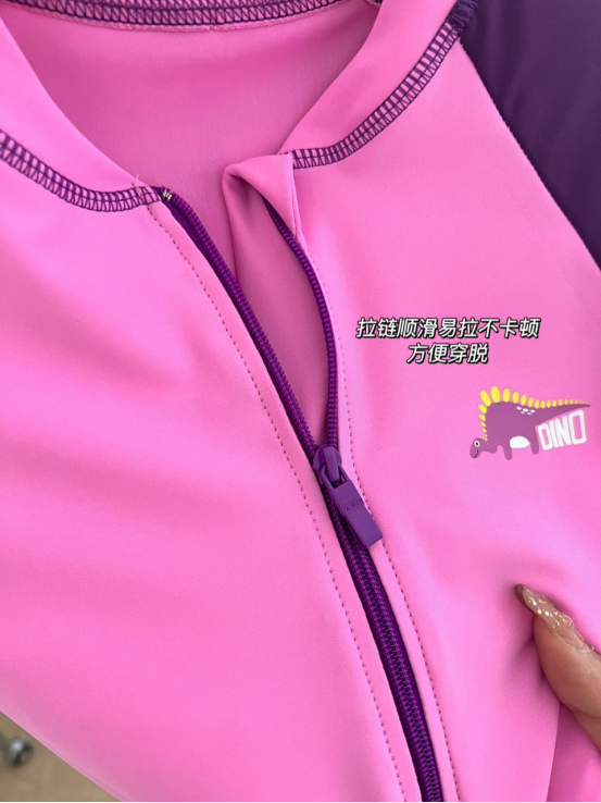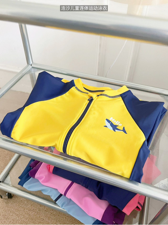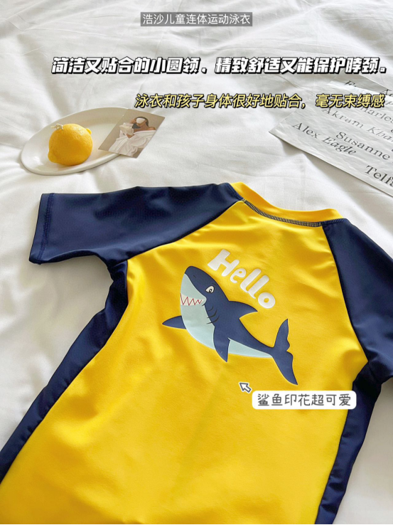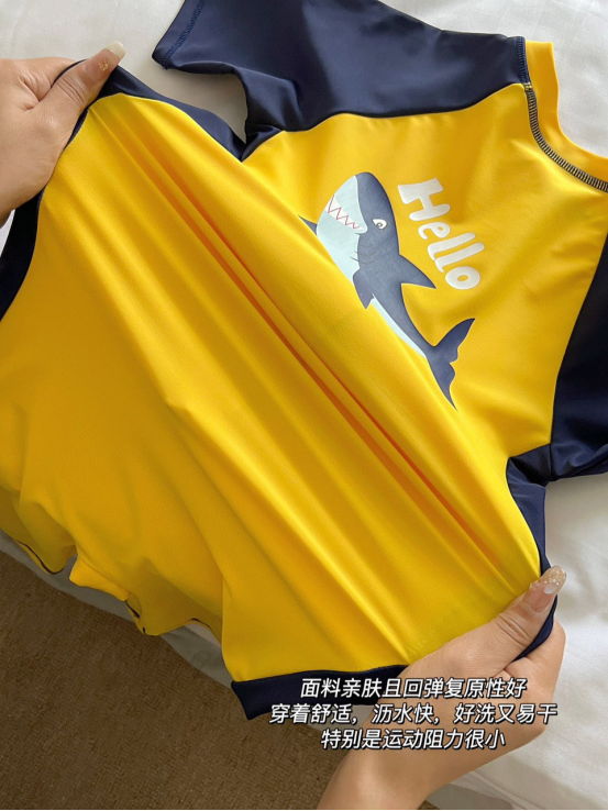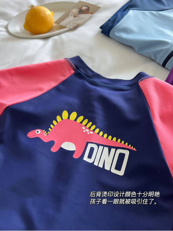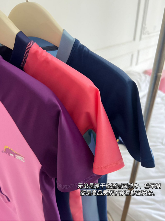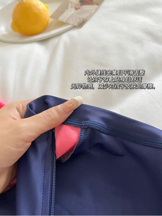 这款泳衣的面料强力吸湿,上岸速干,大大减少了孩子着凉的可能性,能有效预防感冒