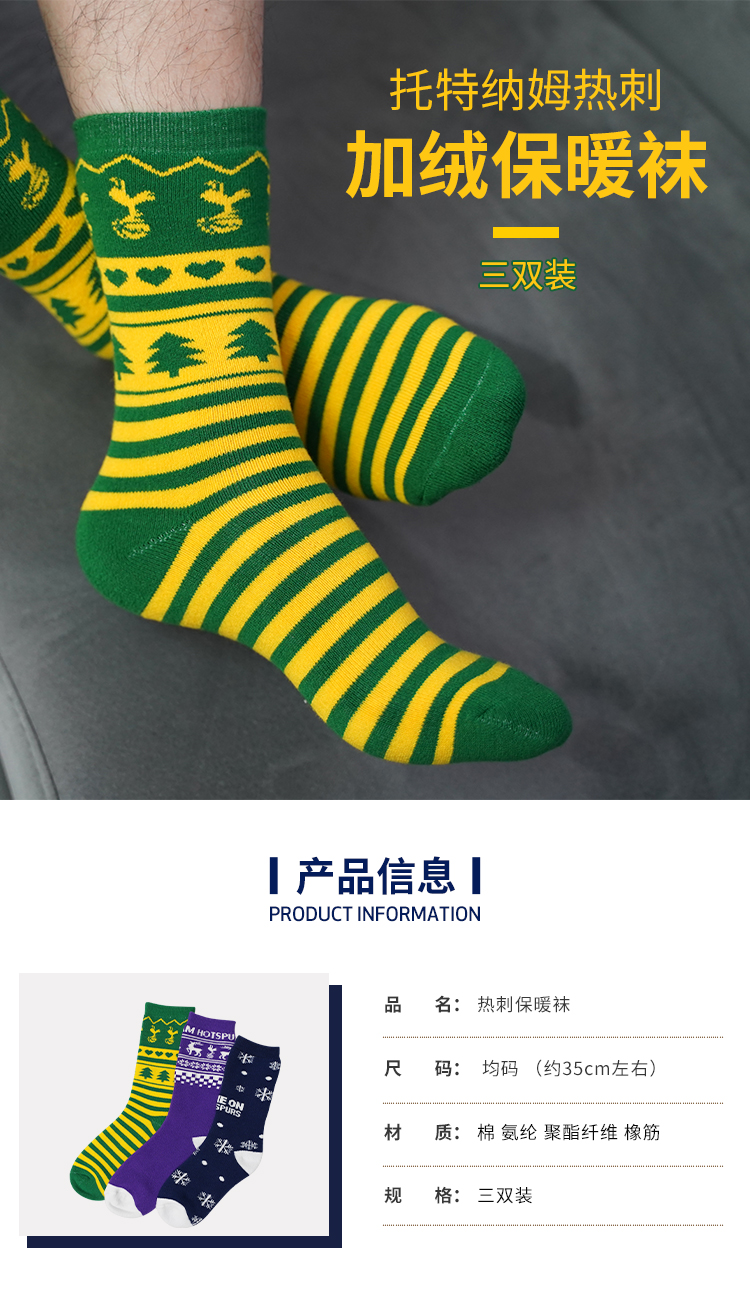 正品休闲足球个性潮流中筒袜加厚三双装THFCSDW01