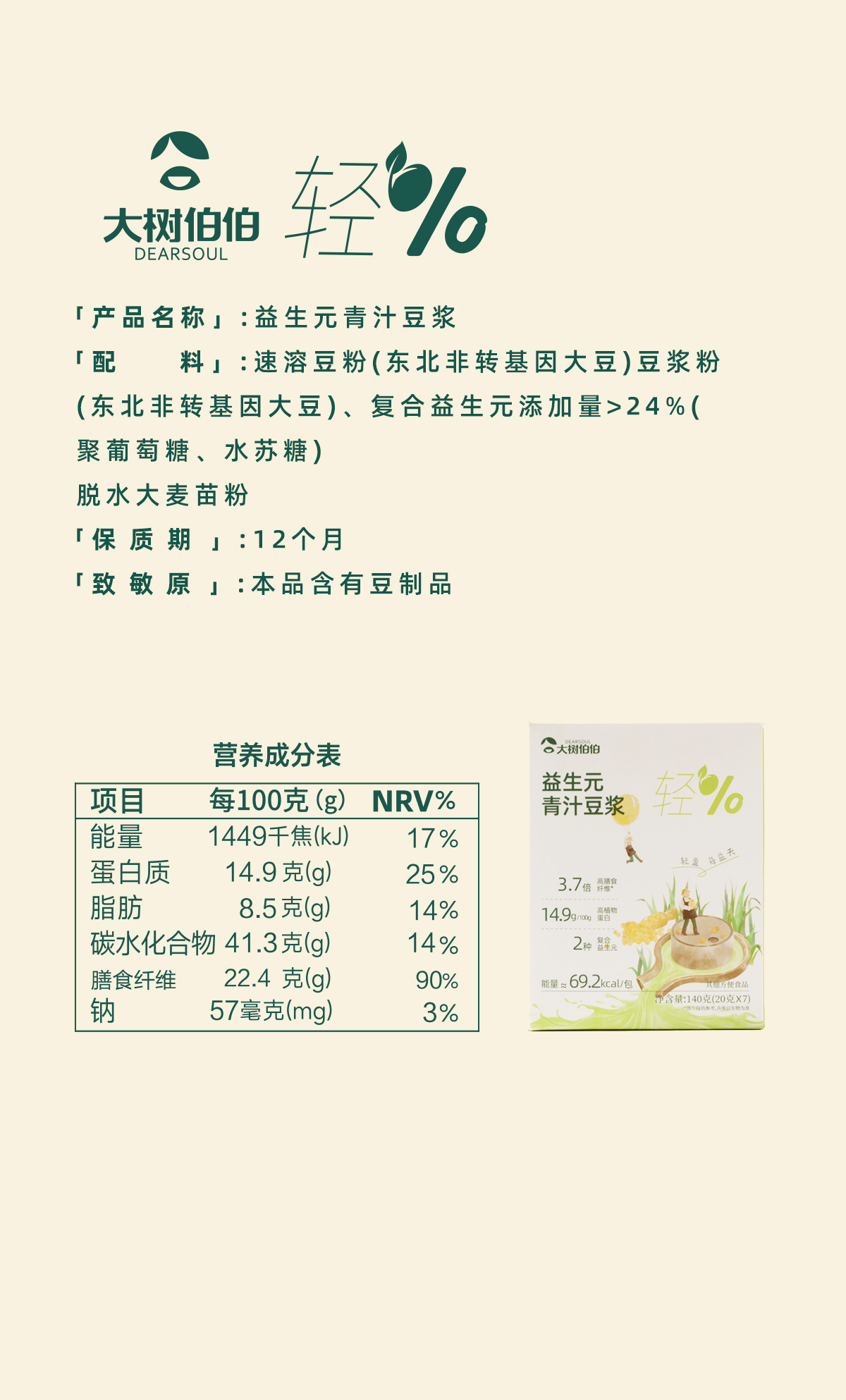 大树伯伯青汁豆浆冷泡热泡高蛋白质高膳食纤维添加复合益生元