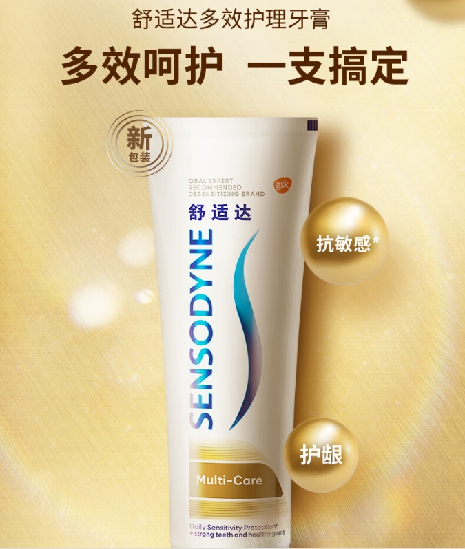 【双十一 爆品】舒适达 家庭装抗敏感牙膏防蛀保护牙龈亮白 335g(100g×3+便携装35g×1)